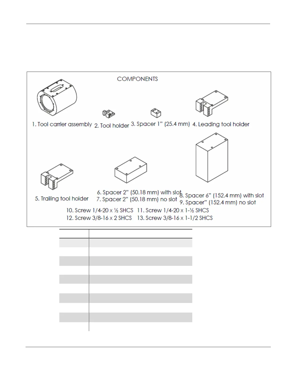 The boring head requires a tool carrier. See “Tool carrier setup” on page 31 for