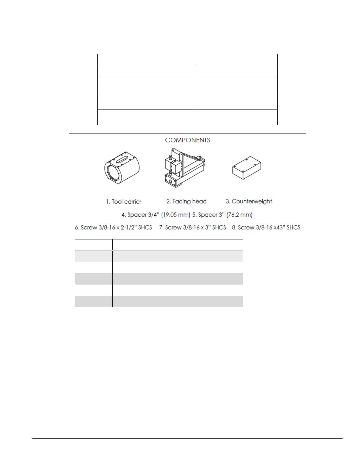of the facing head. The components figure shows spacers for one