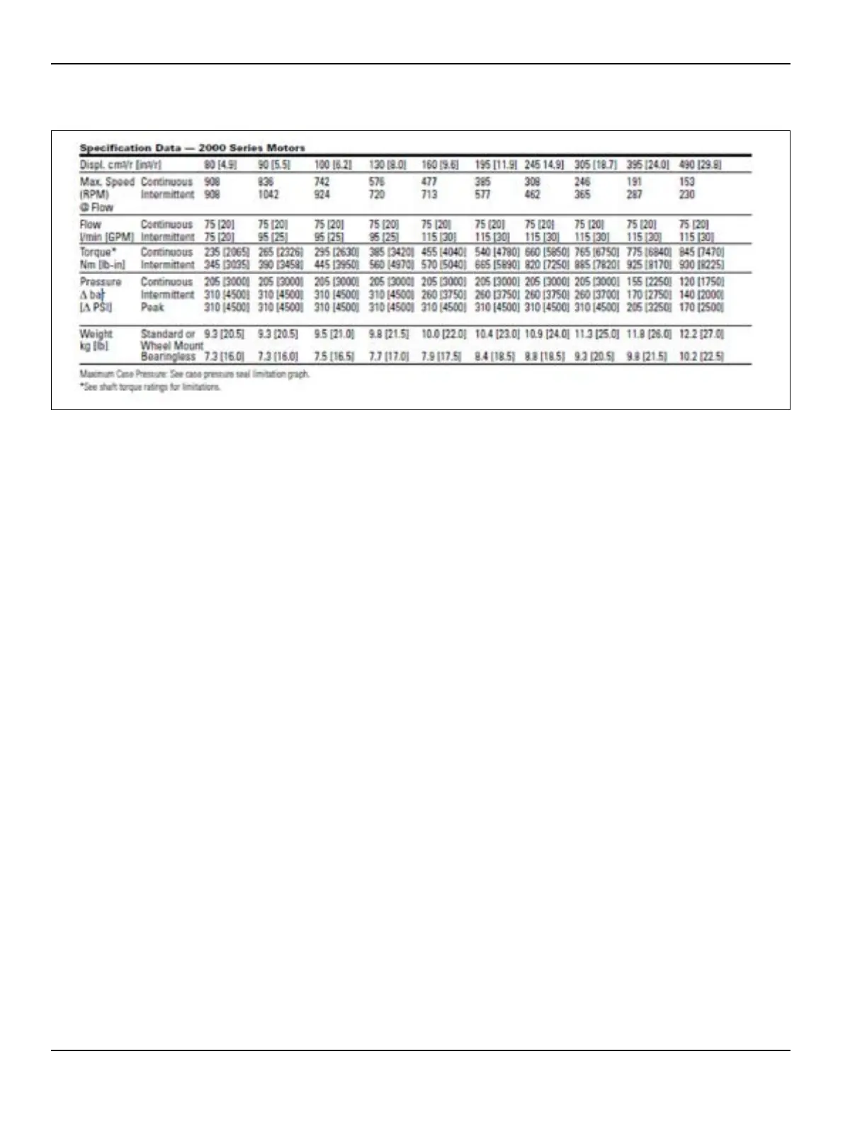 FIGURE 2-6. HYDRAULIC MOTOR SPECIFICATIONS