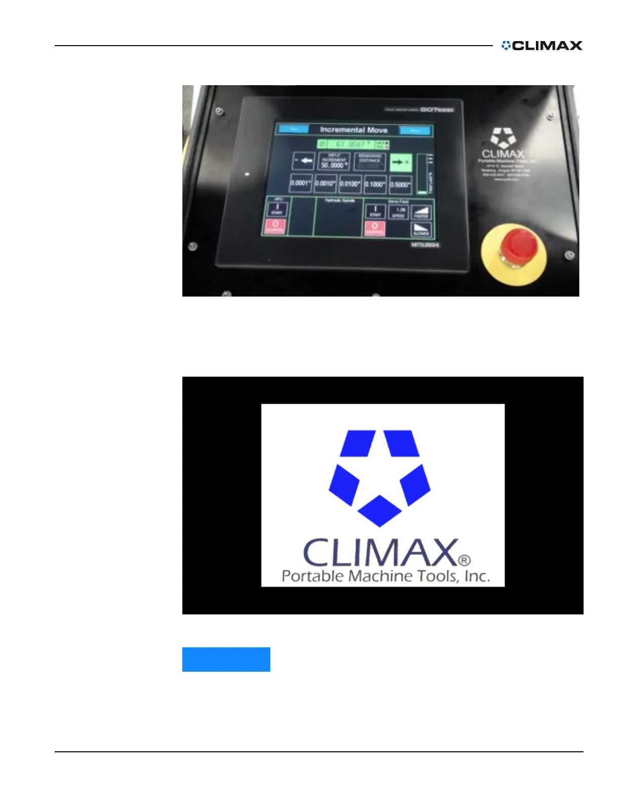 on the HMI. The user is cautioned about operating the machine and must reset the