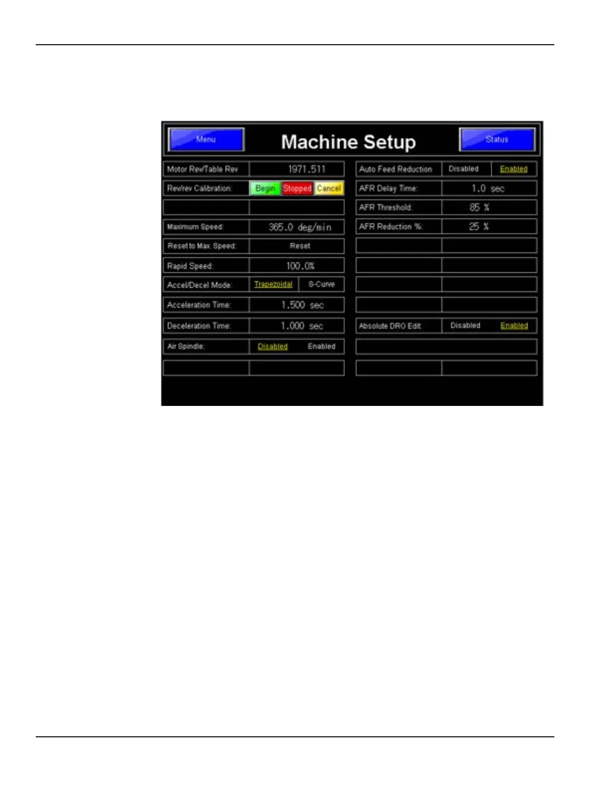The Machine Setup Screen, shown in Figure 4-19, displays the parameters of the
