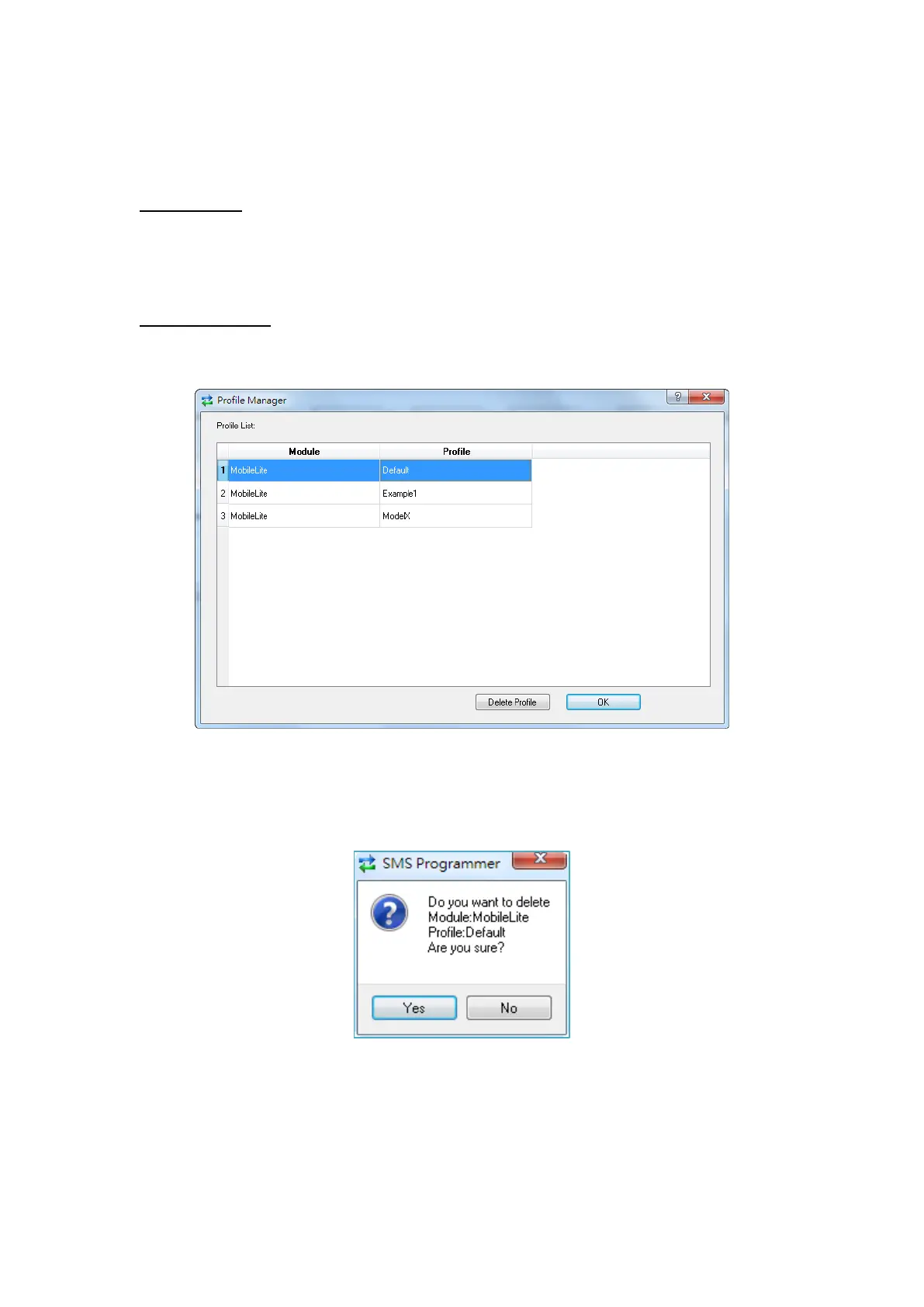 Select “Yes” to delete the profile, or “No” to return to the previous page.