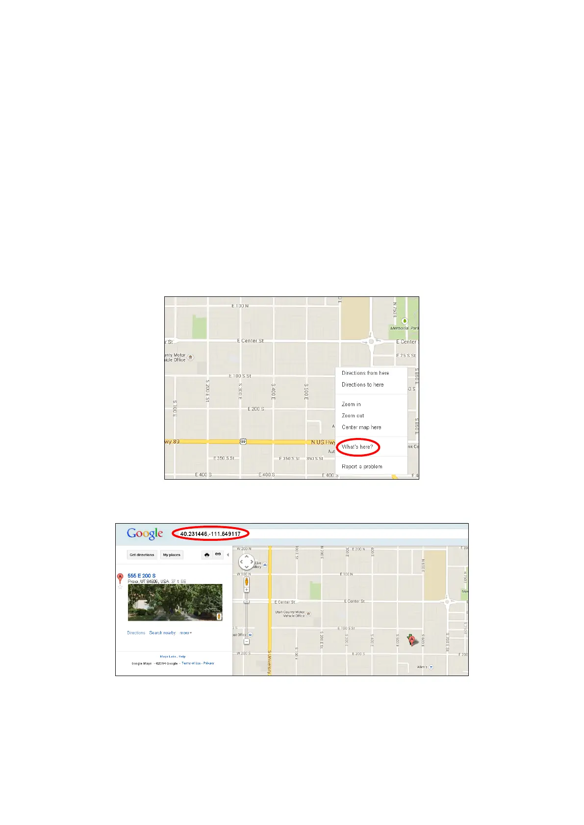 below to identify a coordinate using Google Map: