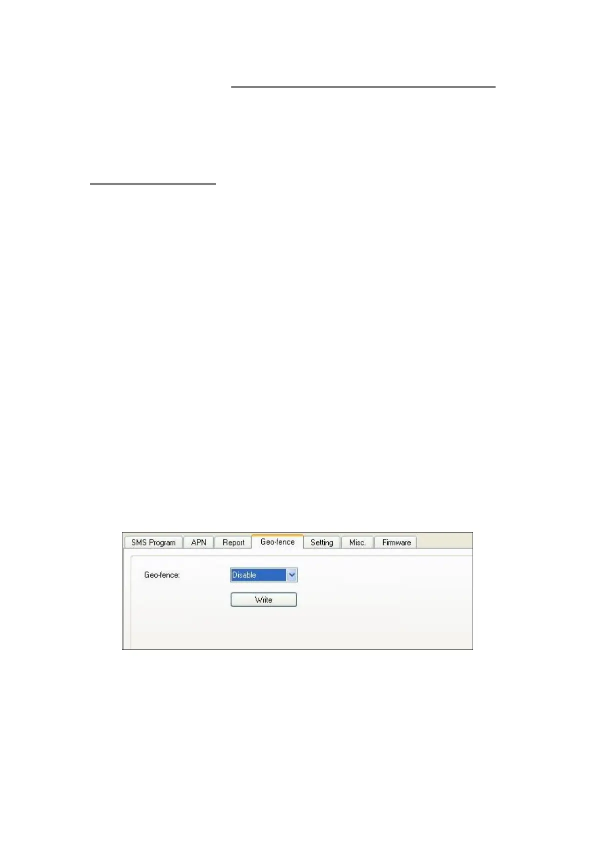 The “Geo-fence” tab allows the user to setup a GeoFence area.