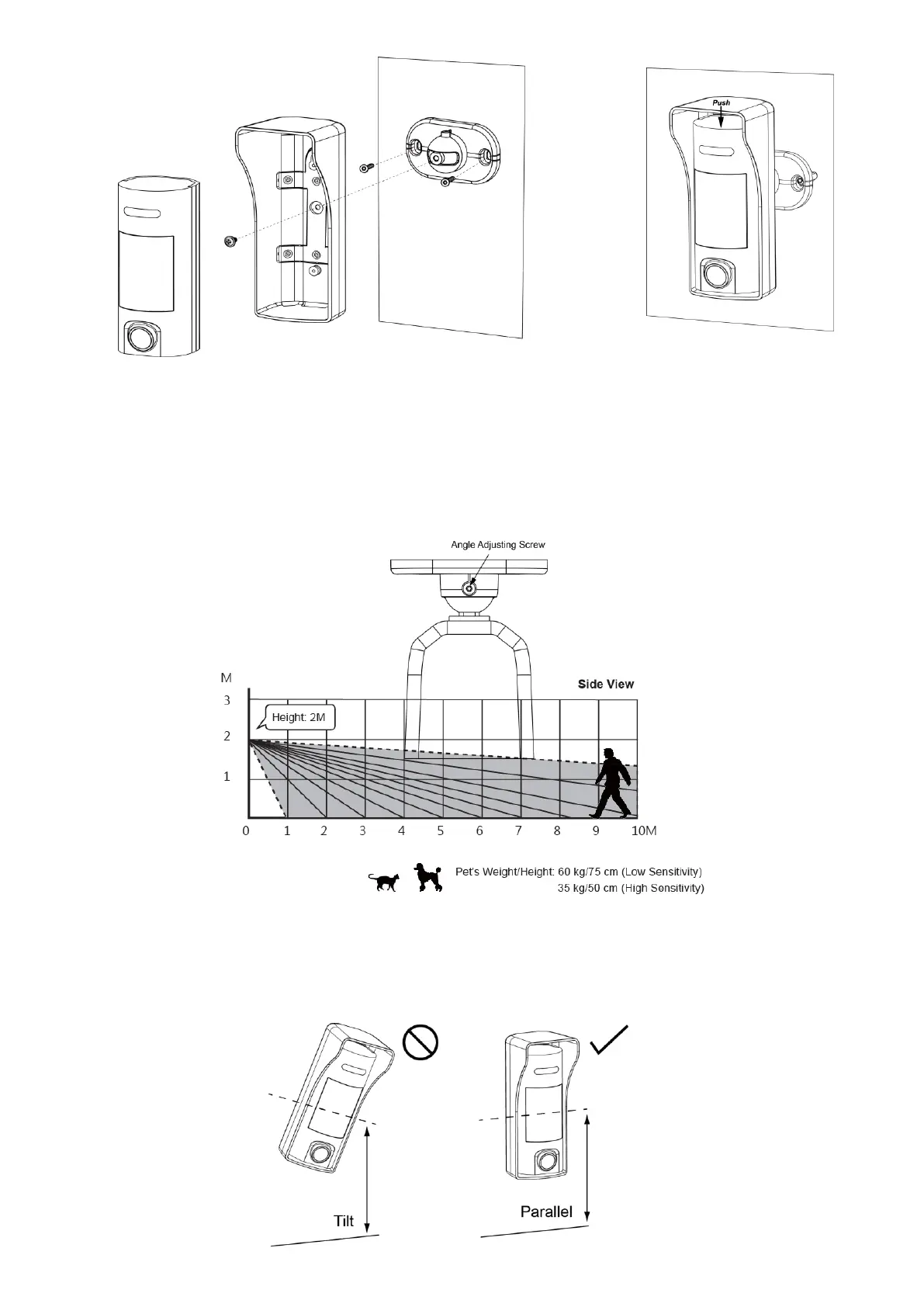 ⚫ Please install the PIR Camera straight up. Do not tilt it.