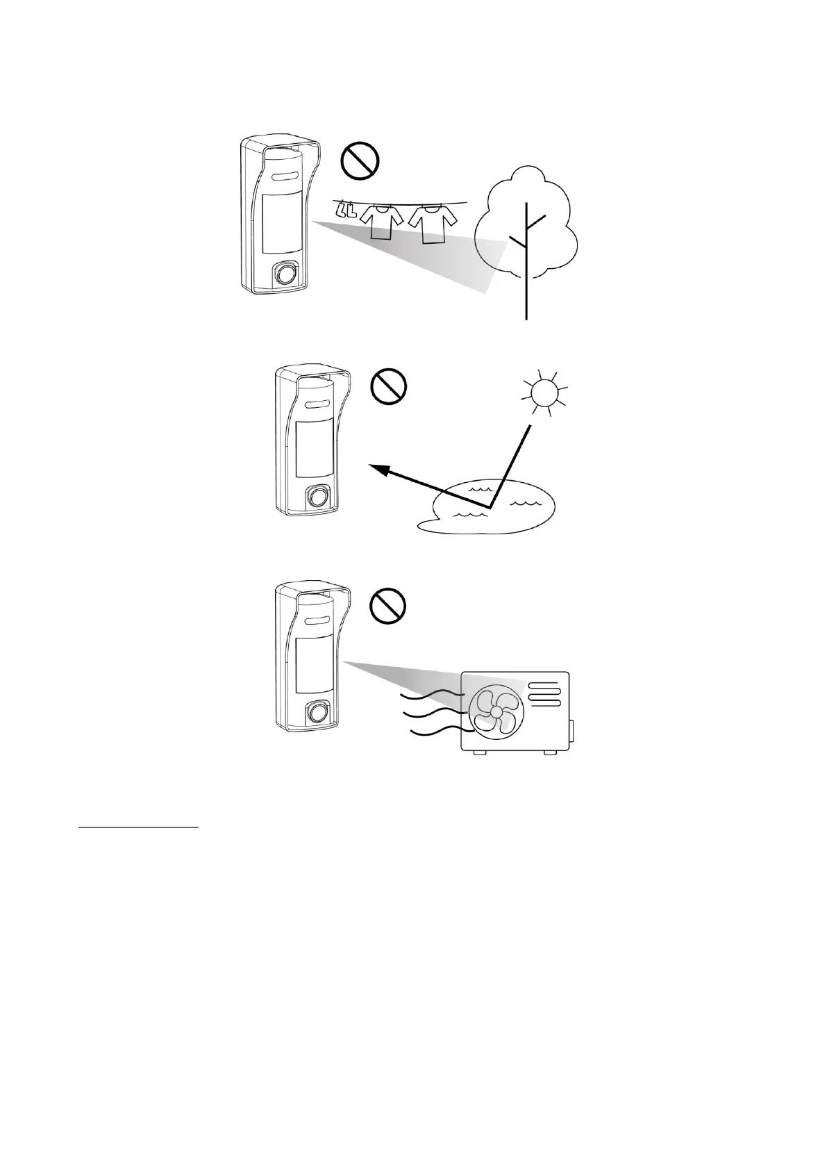 ⚫ Do not install the motion sensor camera where objects moved by wind such as trees and laundry, which may