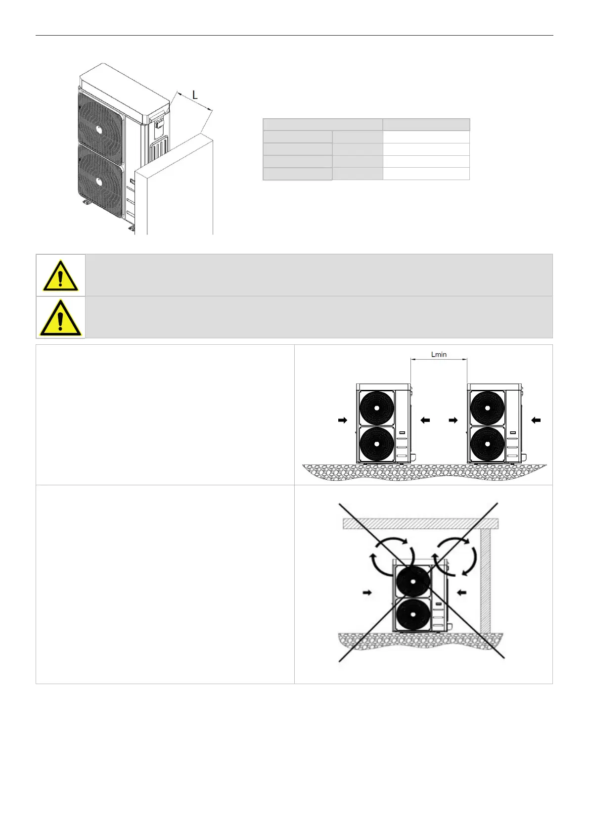 In the event of side-by-side units, the minimum Lmin distance