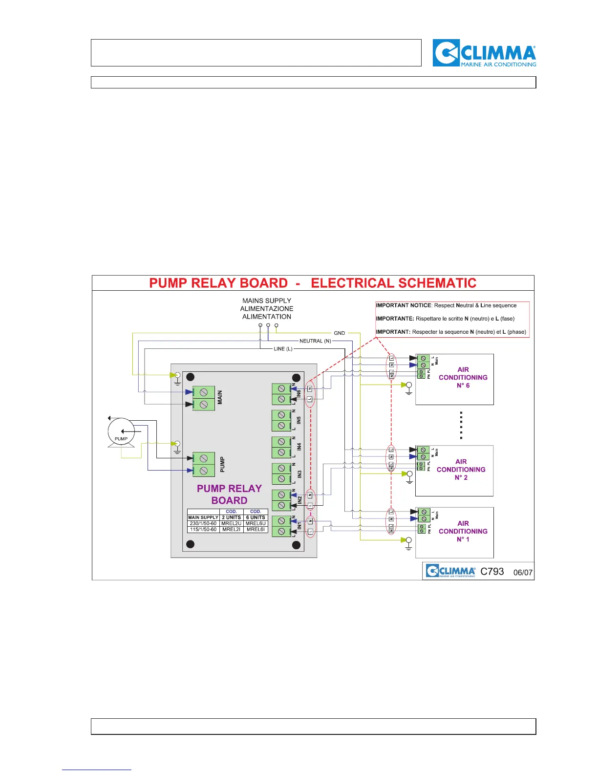 supply of the pump and of the air-conditioners must not be the same. The first one must be protected by an