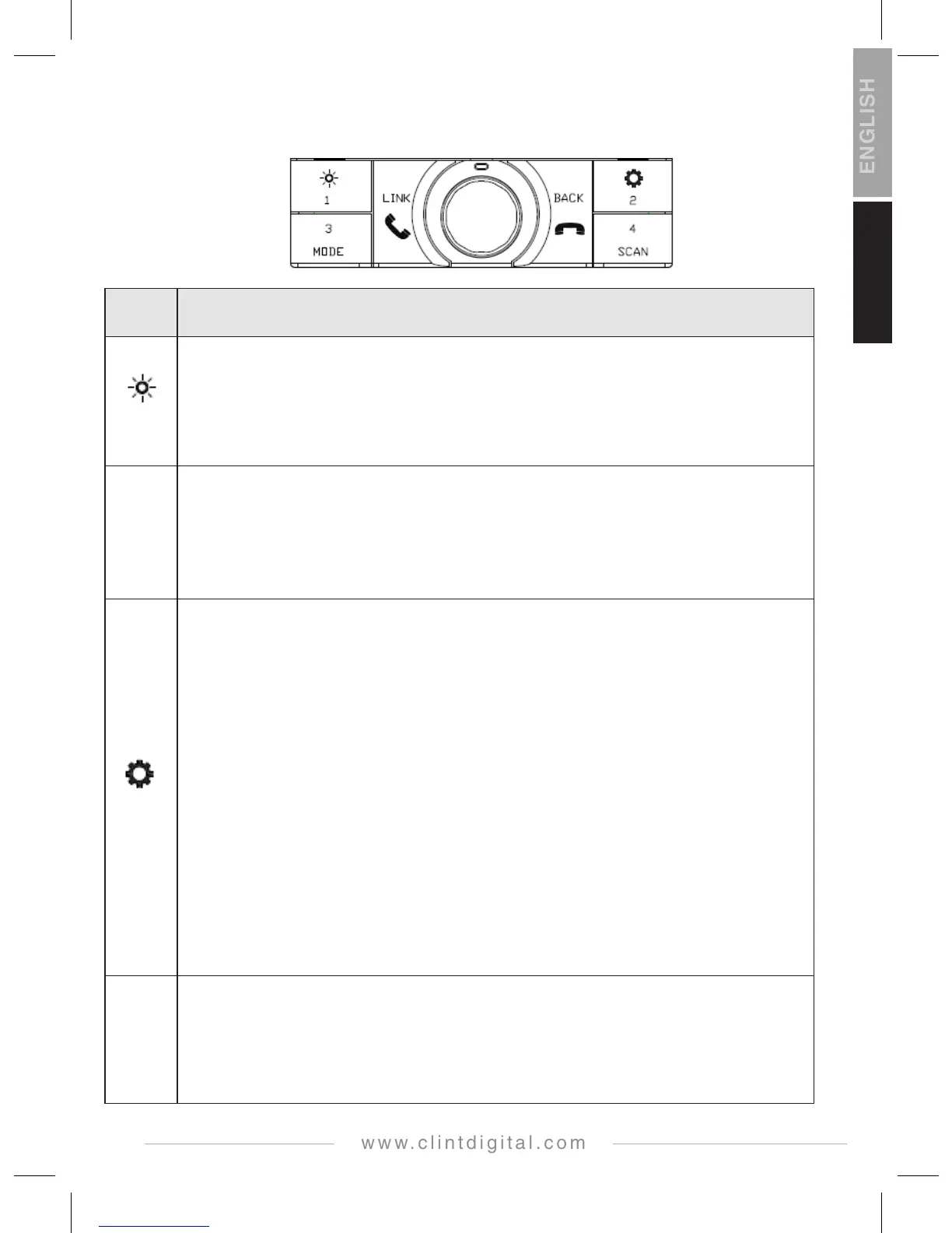 TRYK og HOLD knappen inde for at åbne MENU funktionen (indstillinger).