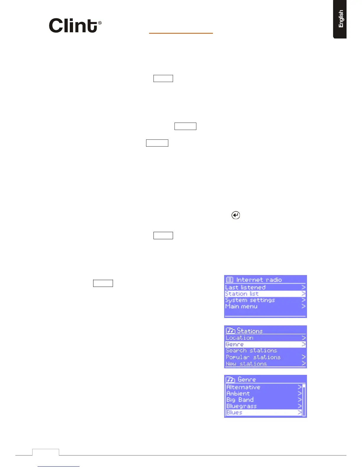 WhenInternetradiomoderestarts,thelast‐listenedstationisselected.Toselectanother
