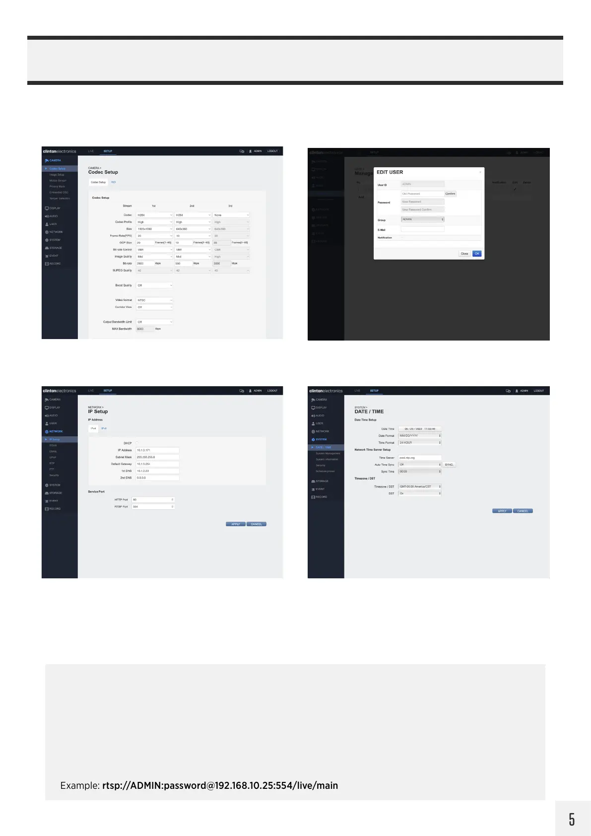 Example: rtsp://ADMIN:password@192.168.10.25:554/live/main