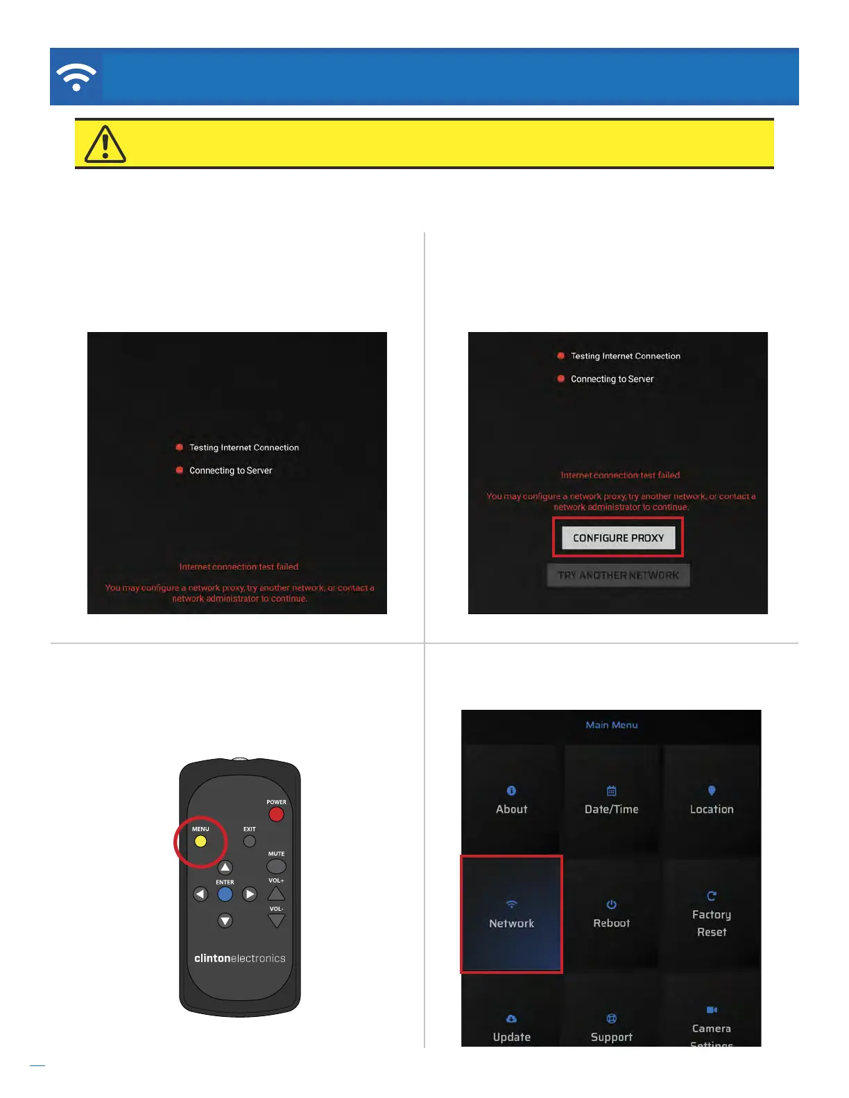 ATTENTION: Network Proxy settings must first be configured. If the settings are not set up on the