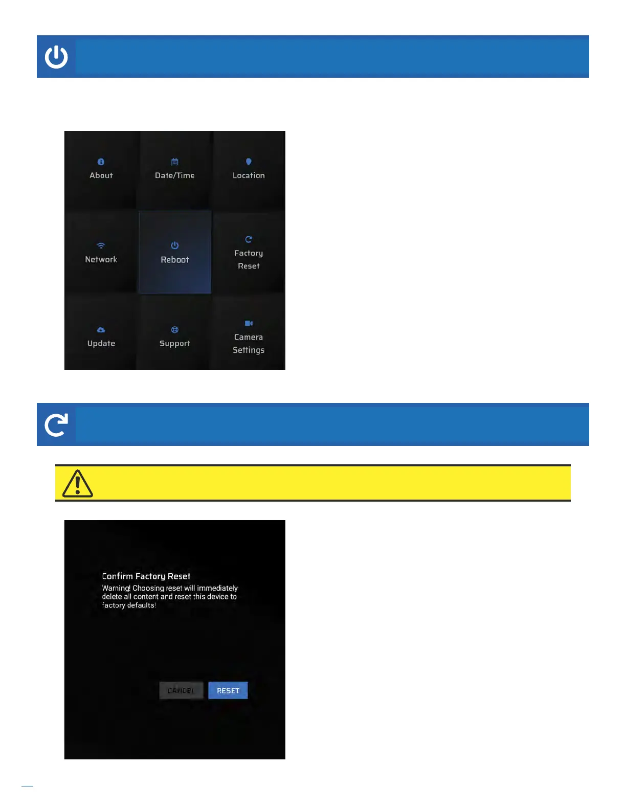 ATTENTION: Performing a Factory Reset will remove all advertising content, delete any network