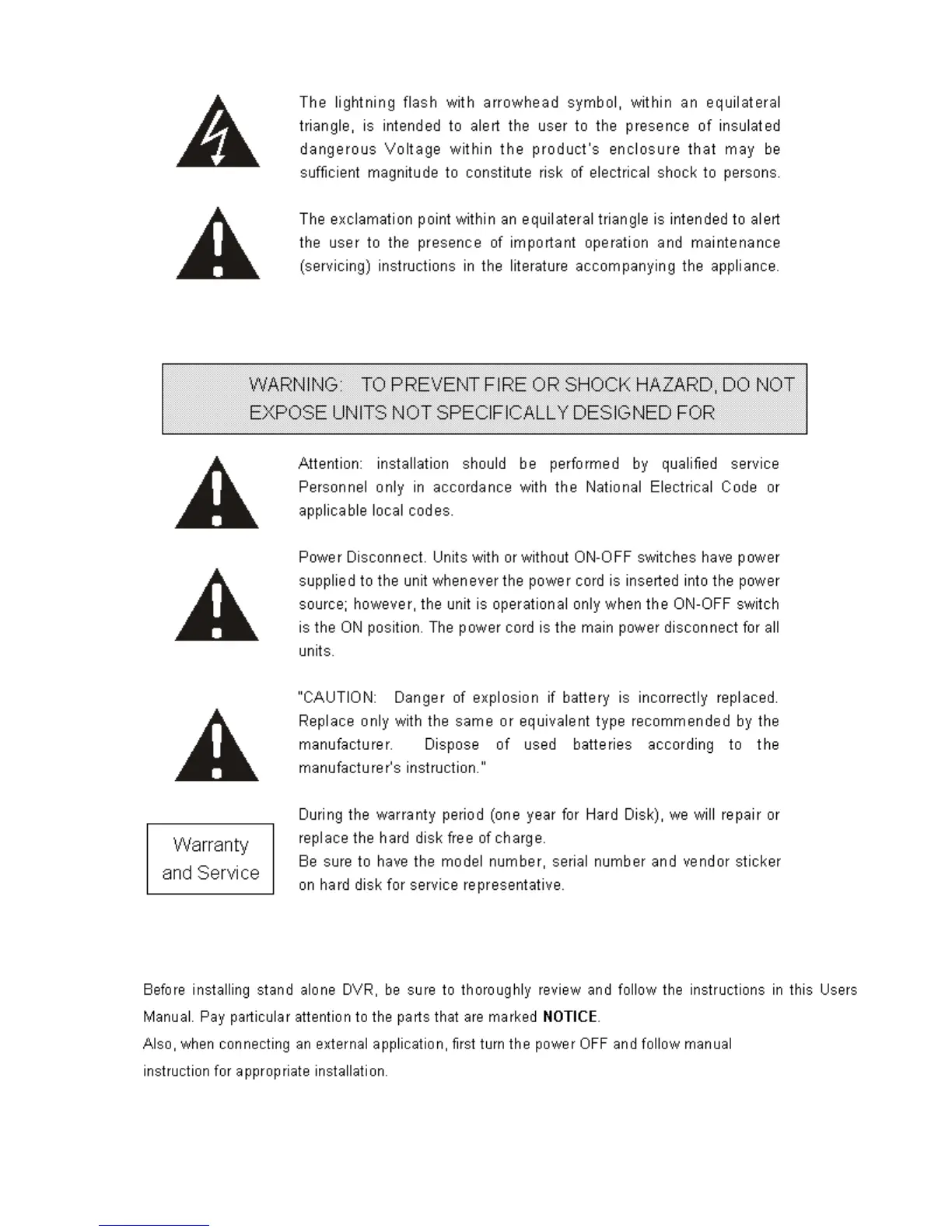 Clinton CE-DVR163 - Safety Precautions; Safety Symbols and Warnings; Warranty and Service Information; About This Manual