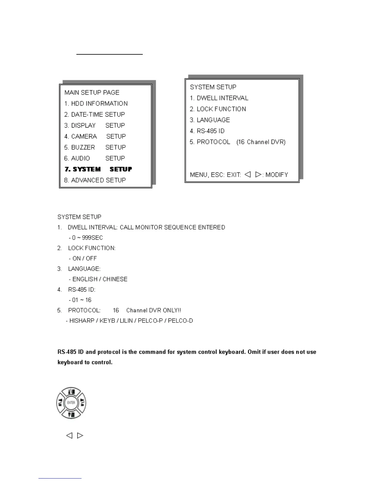 Clinton CE-DVR163 - System Setup; System Configuration Parameters