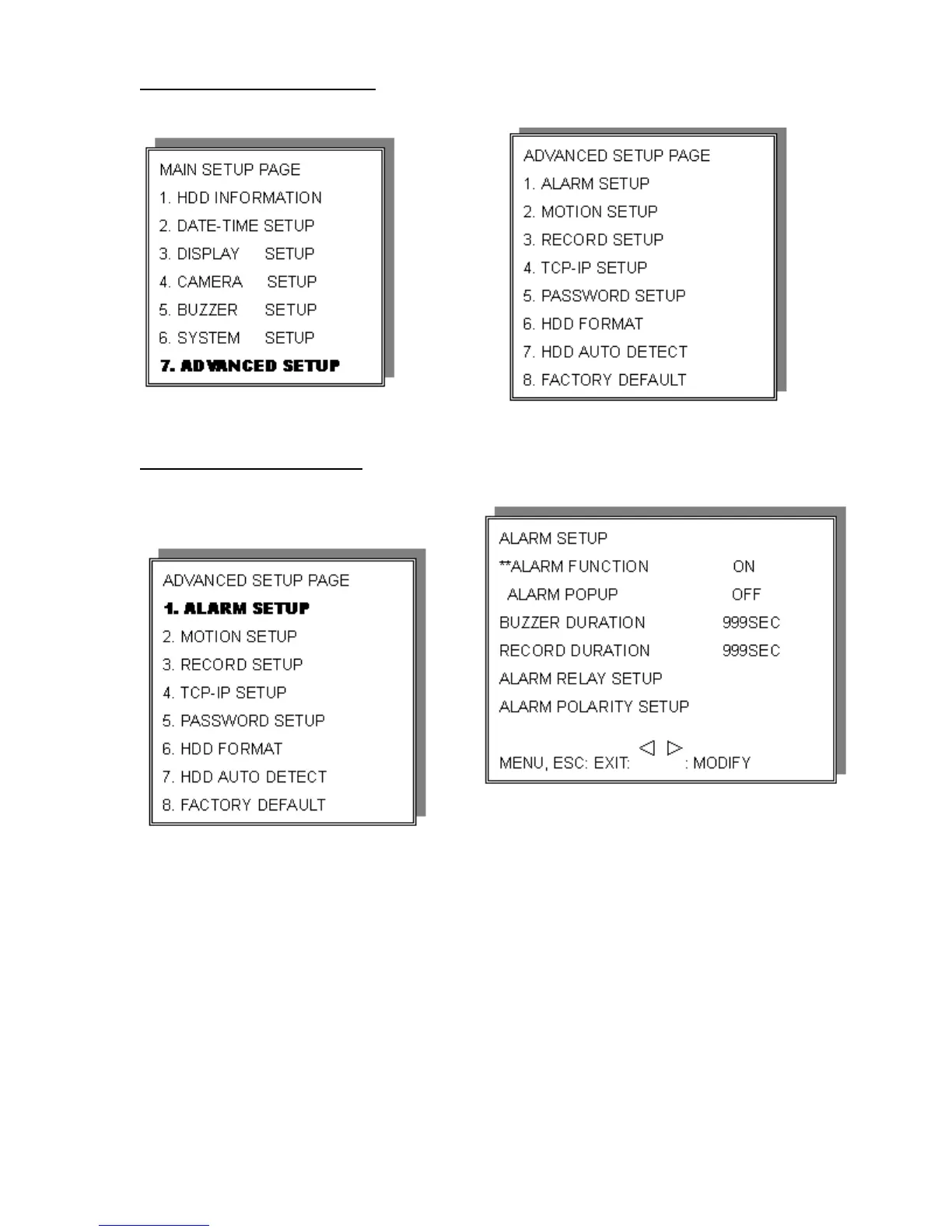 Clinton CE-DVR163 - Advanced Setup Options; Alarm Setup Configuration