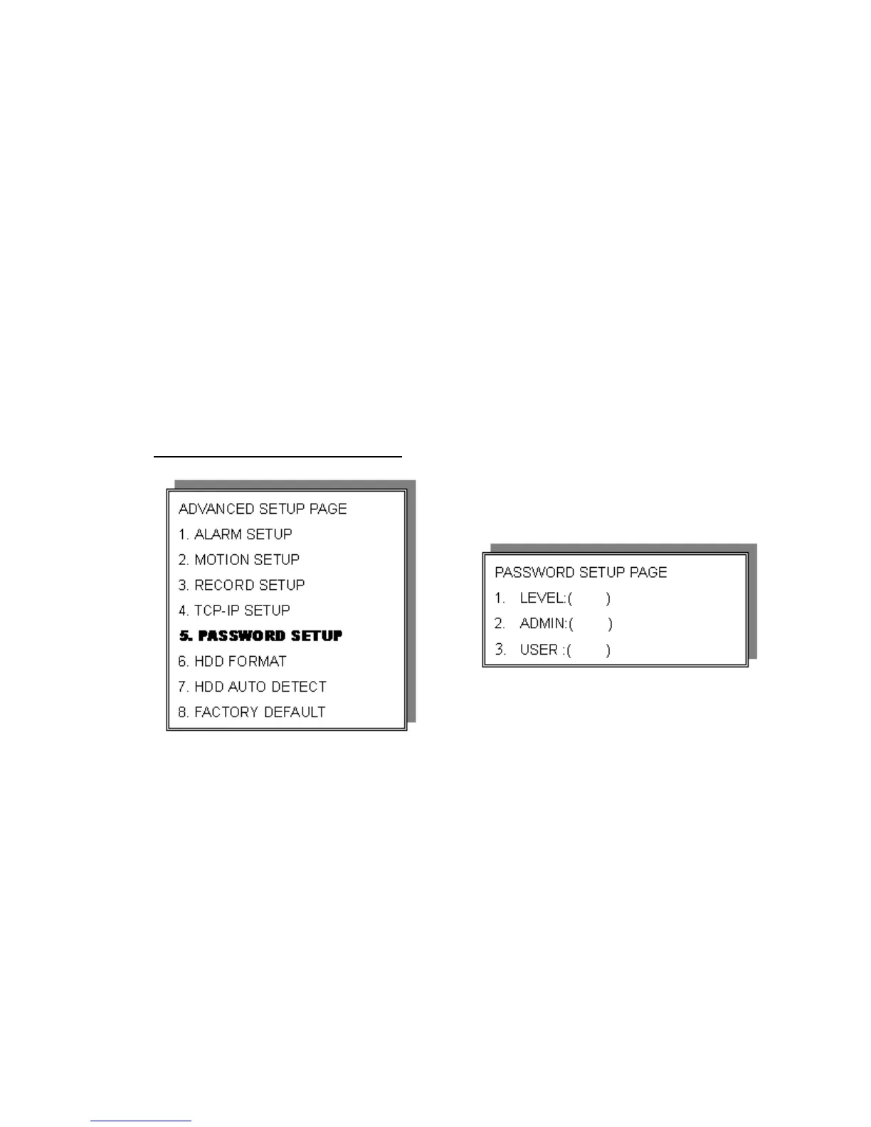 a. LEVEL (Log In level ID type setup) >NONE / ADMIN / USER