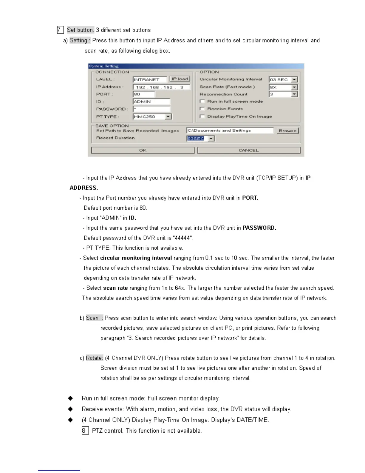 Clinton CE-DVR163 - Remote Viewer Settings and Functions; Network and Monitoring Settings; Search, Rotate, and Display Options