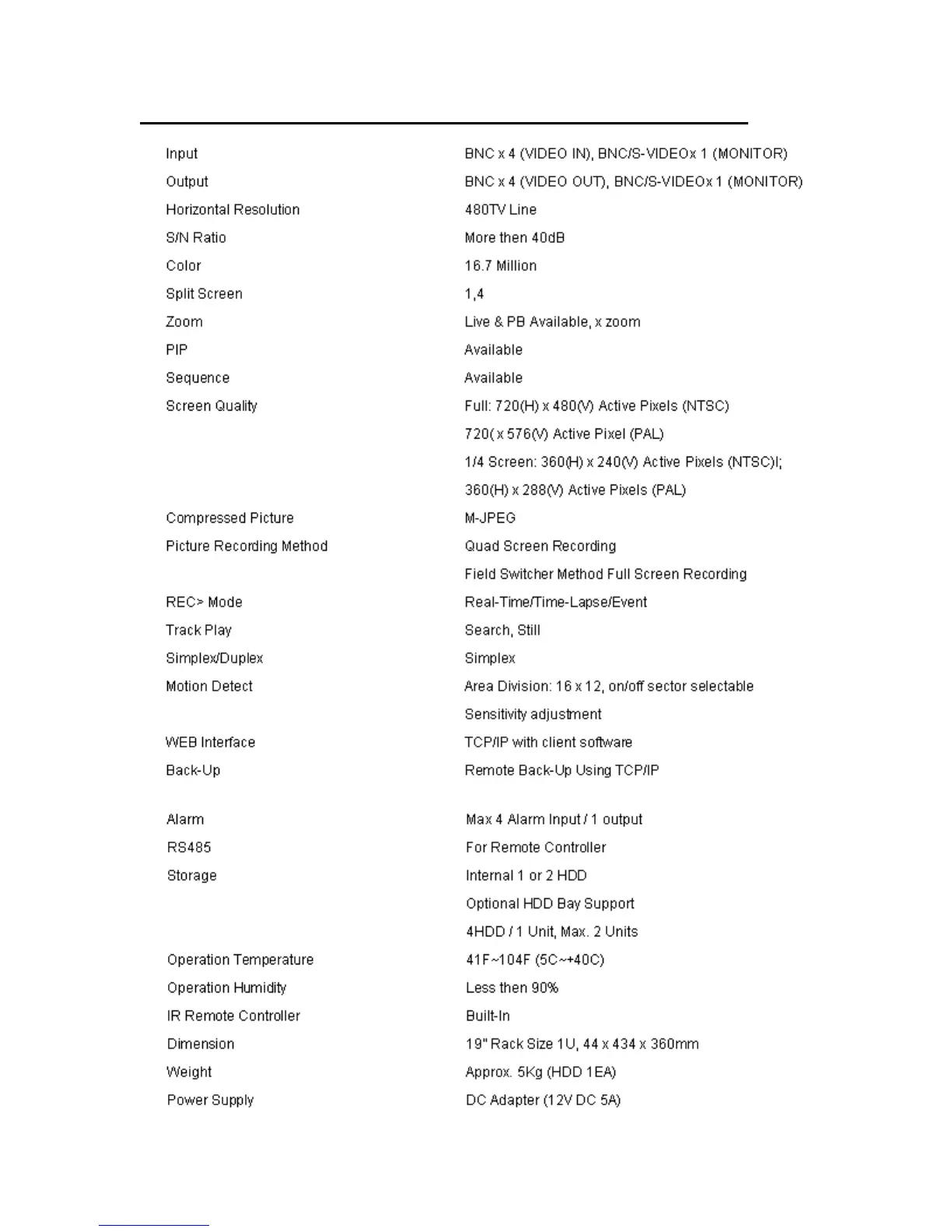 4 CHANNEL DVR SPECIFICATION AND CONFIGURATION