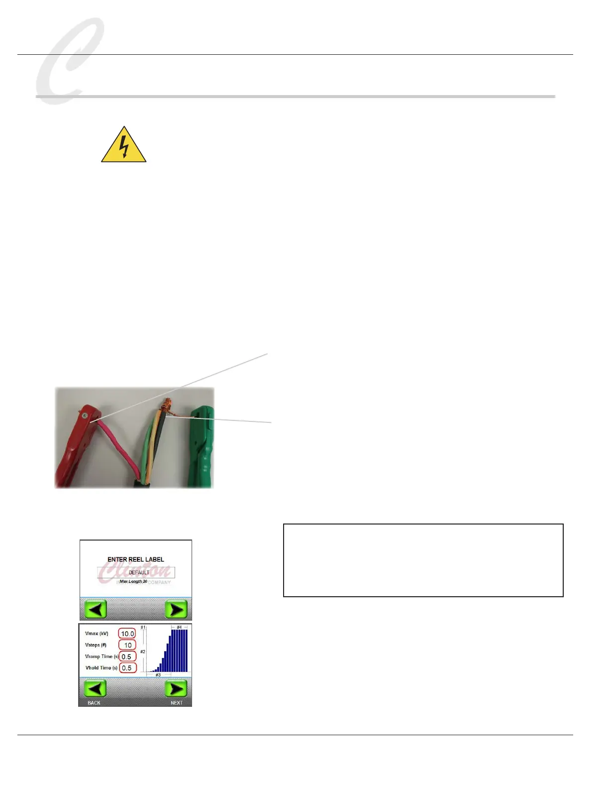 2. Select the rst conductor to be tested. Strip back by 1” and