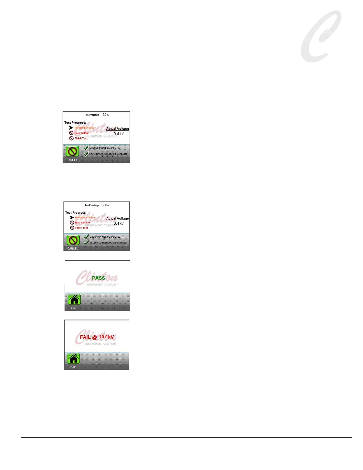 12. If the hi-pot test is successful, the touch screen will dis-