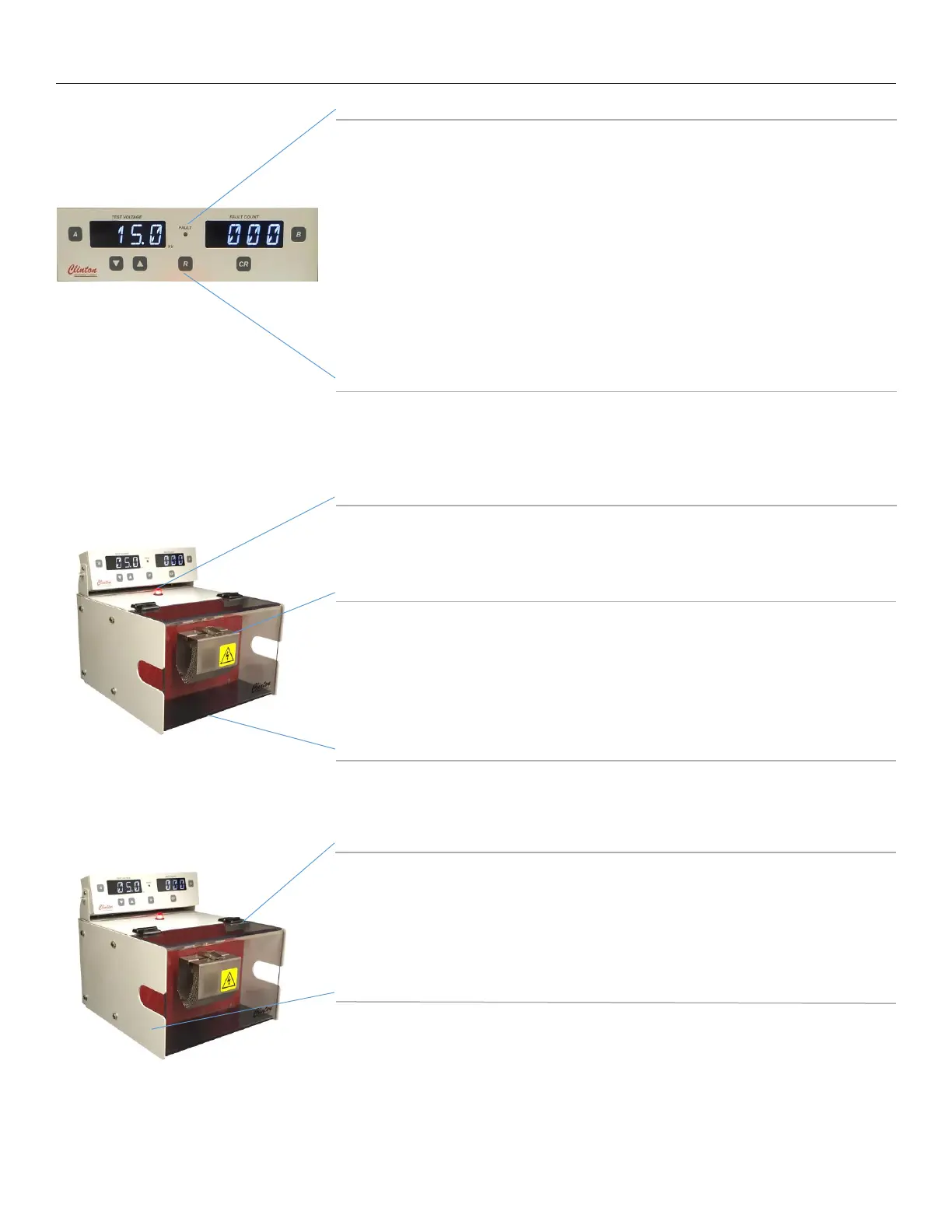 the product under test as it runs through the electrode. 1”, 2”, and 3”