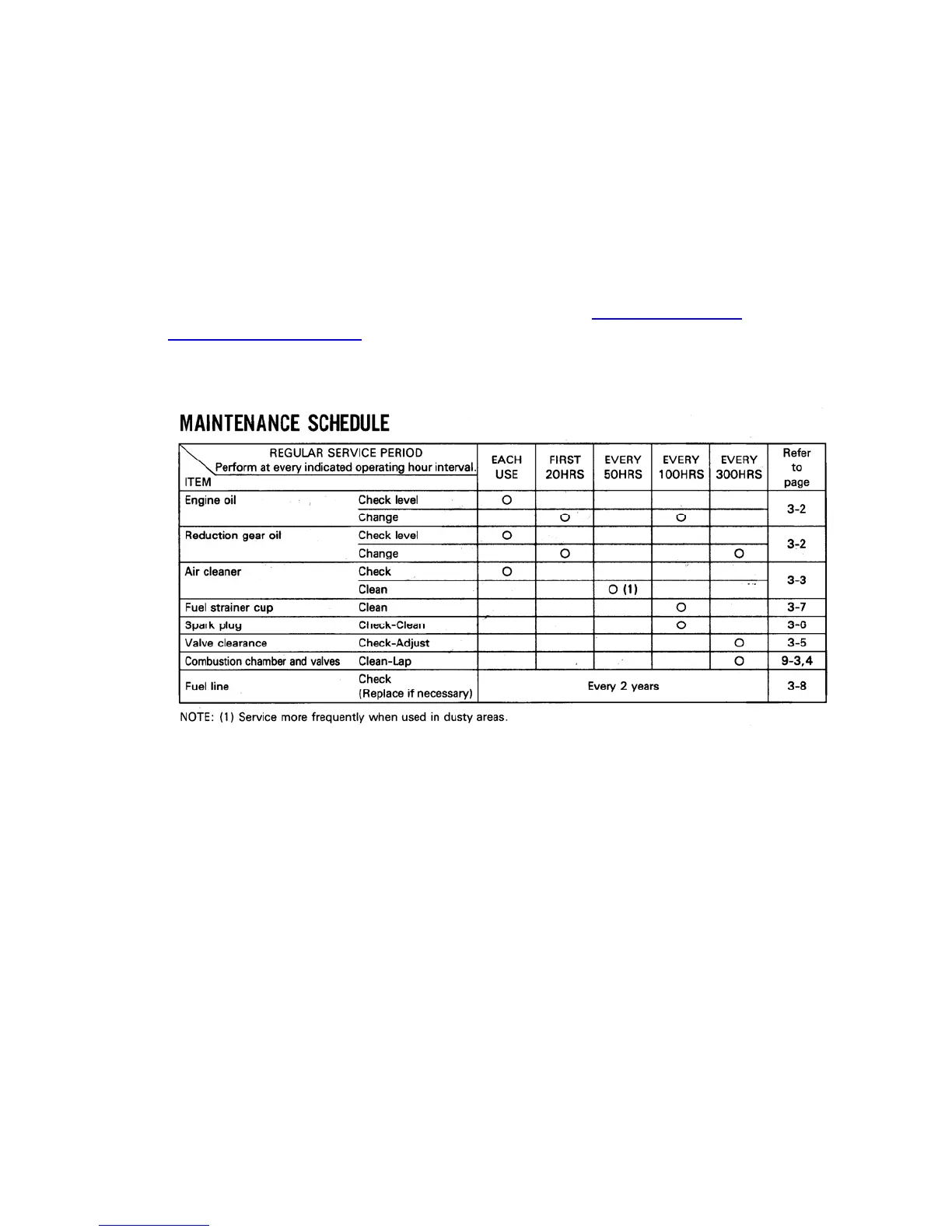 Follow the below schedule for engine maintenance. NOTE: Check the Honda