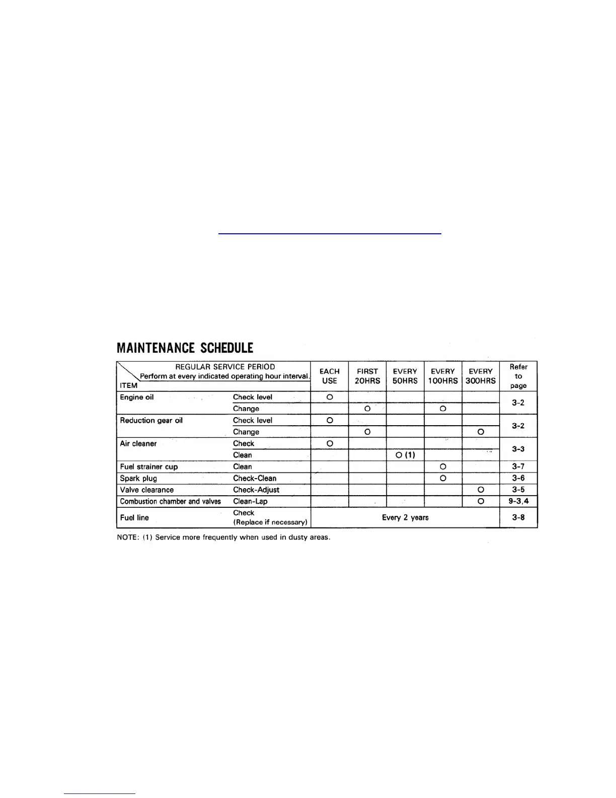 Follow the below schedule for engine maintenance. NOTE: Check the Honda