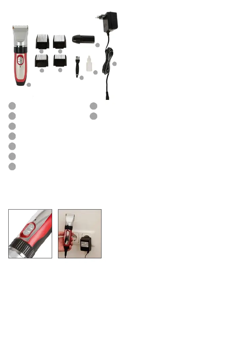 Anslut nätenheten i klippmaskinens uttag, som finns maskinens nedre del. Anslut sedan nätenheten till strömförsörjningen (bild 2).