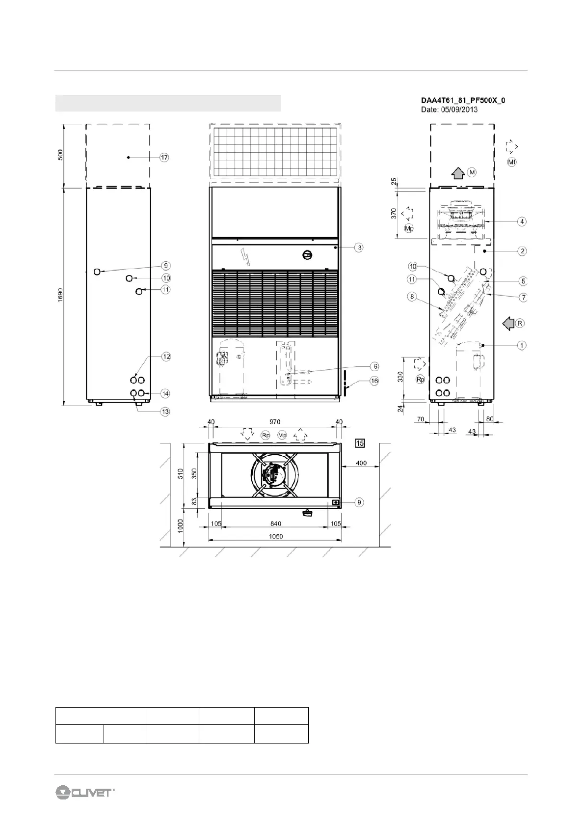 10. WATER LINE OUTPUT OF THE HEATING COIL Ø1" GAS