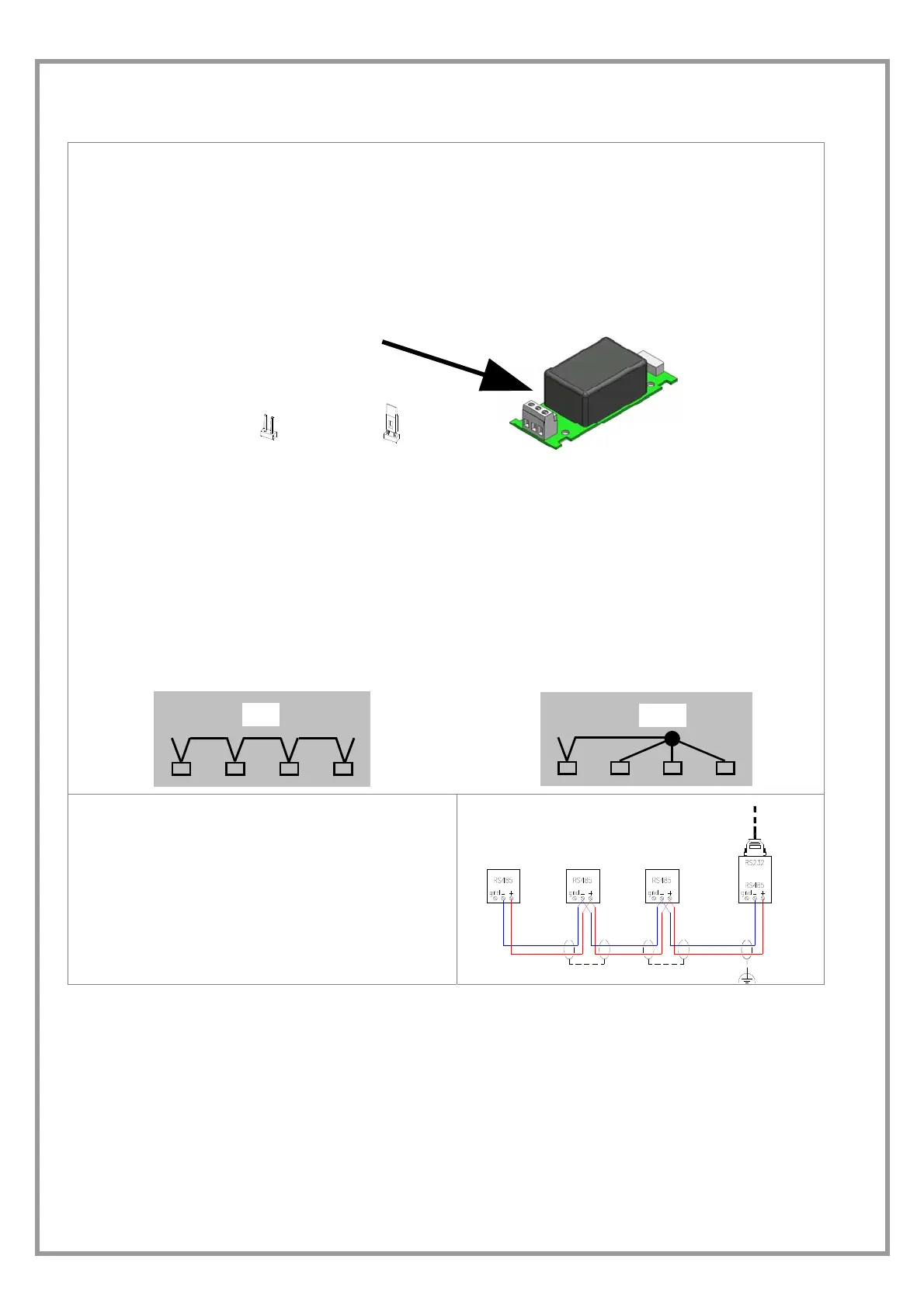 The serial lines must be connected in bus typology, i.e. nodes to more points are not admitted.