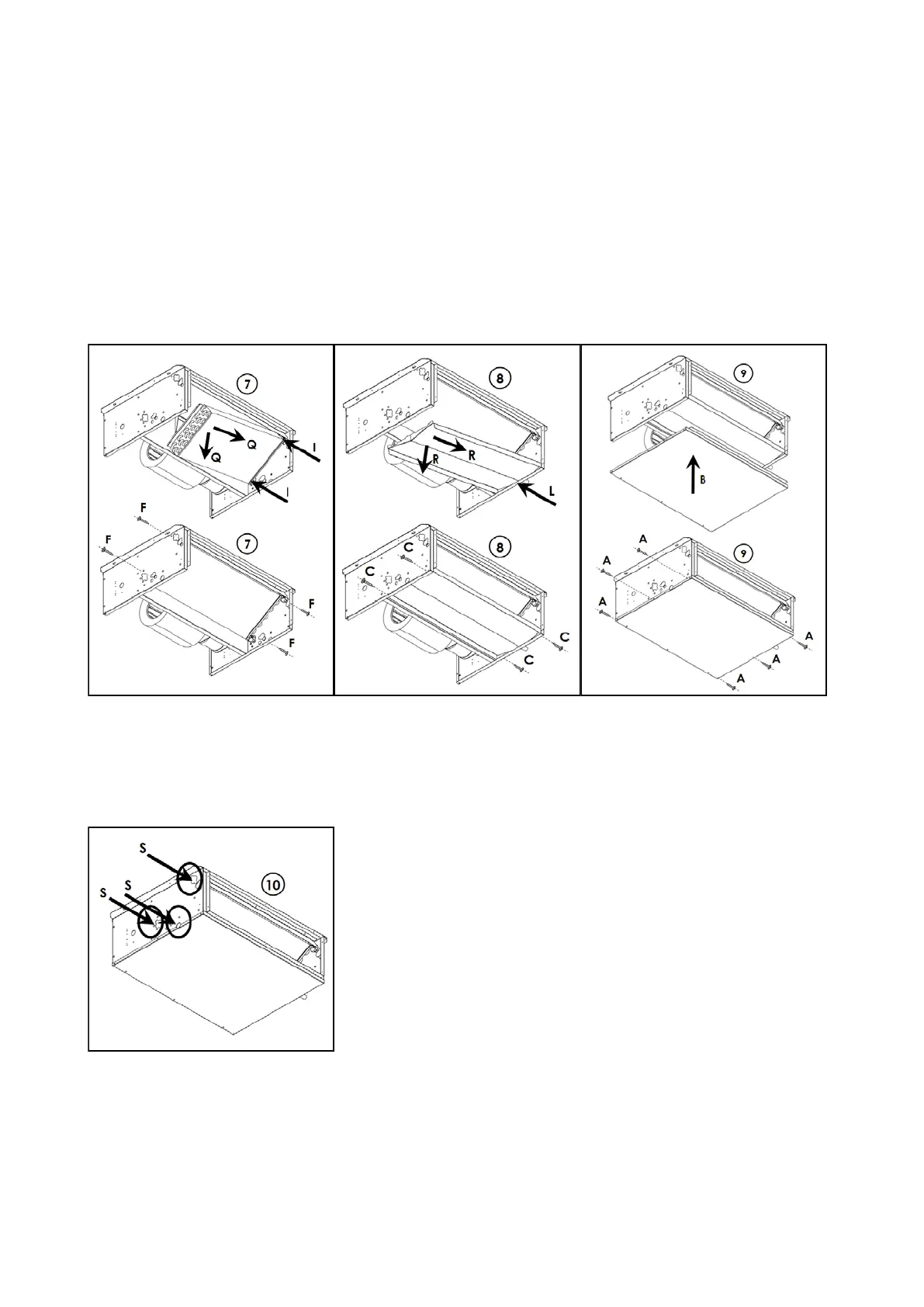 Tighten the 4 Ø 3.9x9.5 screws “F” in the aligned shoulder-coil bracket holes (2 left side + 2 right side).