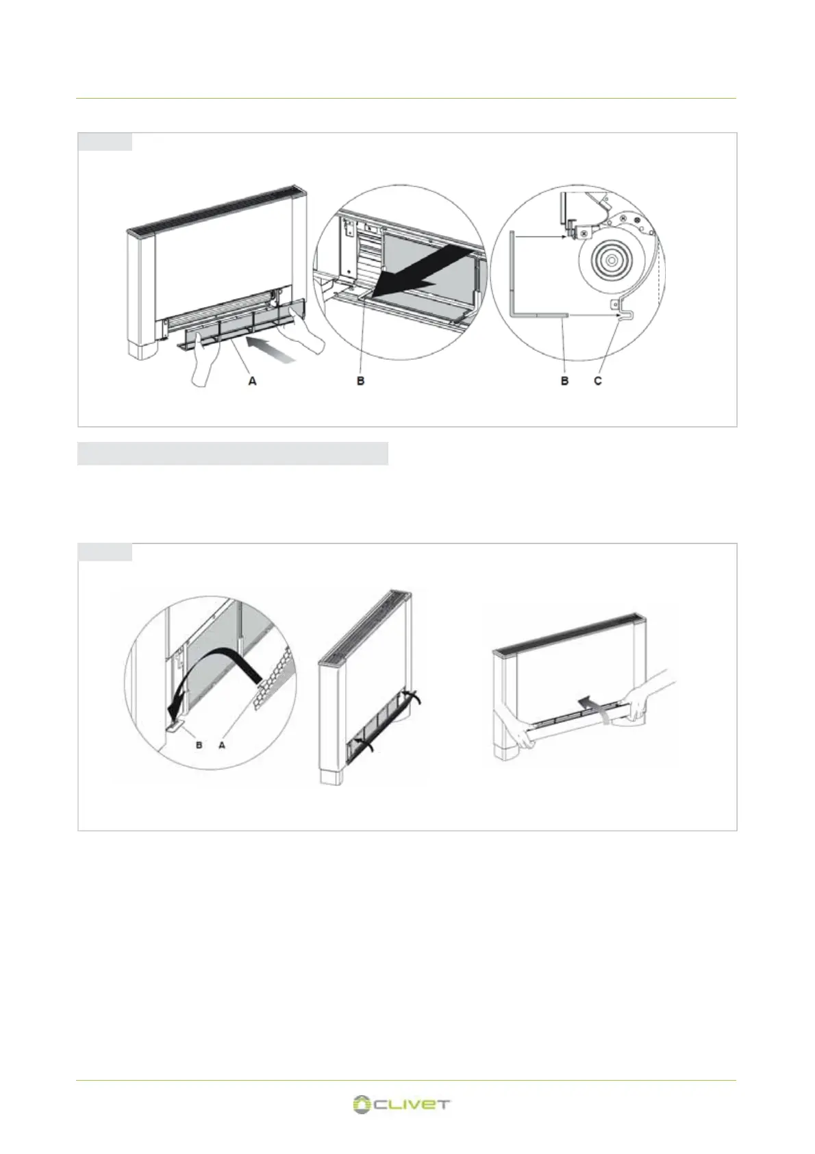 • Pour les versions à grille à ailettes, insérer les deux languettes (fig. 33 réf. A) dans les fentes prévues à cet effet (fig. 33 réf. B), les