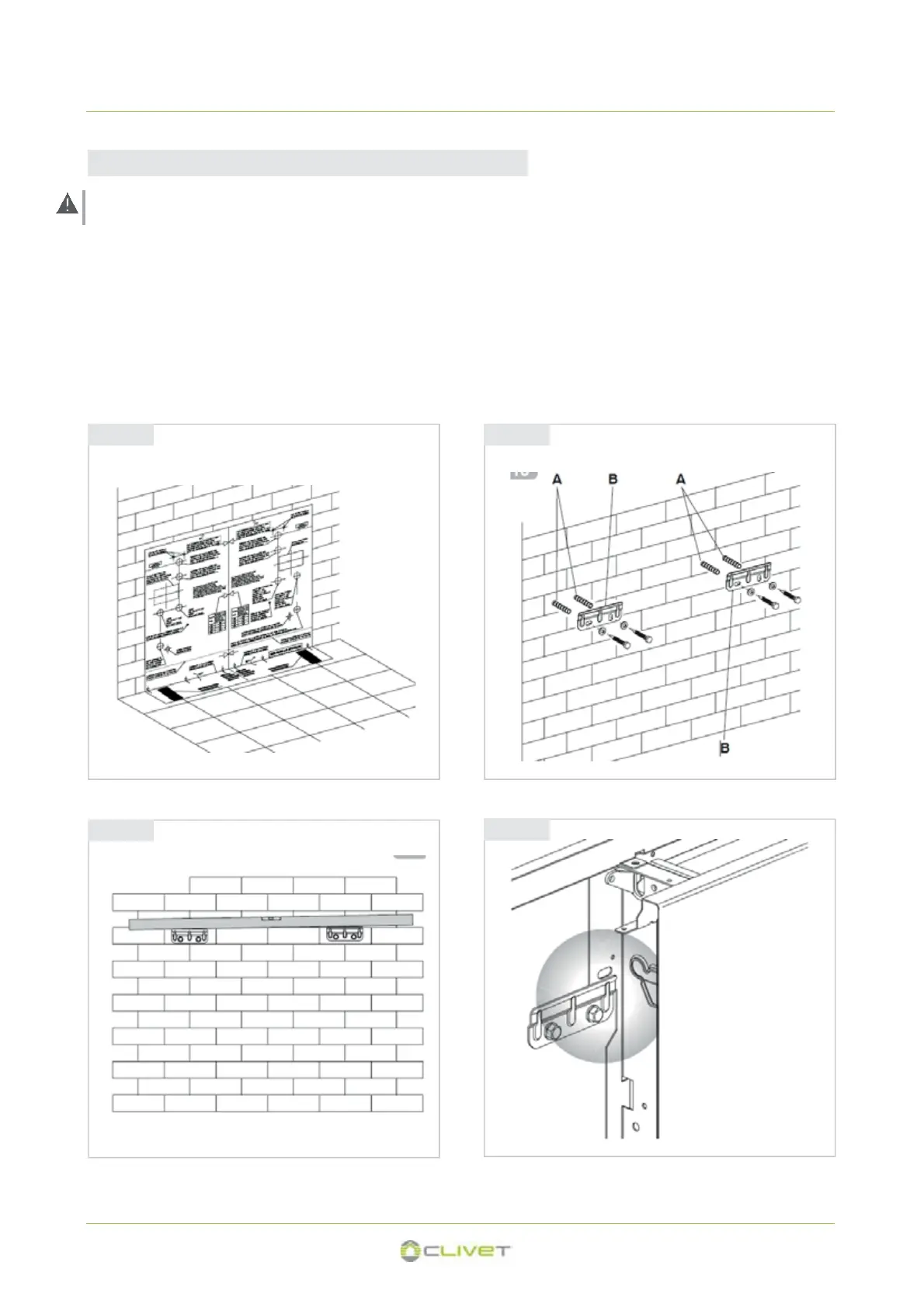 • Use a suitable drill to make the holes with and insert the toggle bolts (2 for each bracket) (fig. 3.3 ref. A); fix the two brackets (fig.