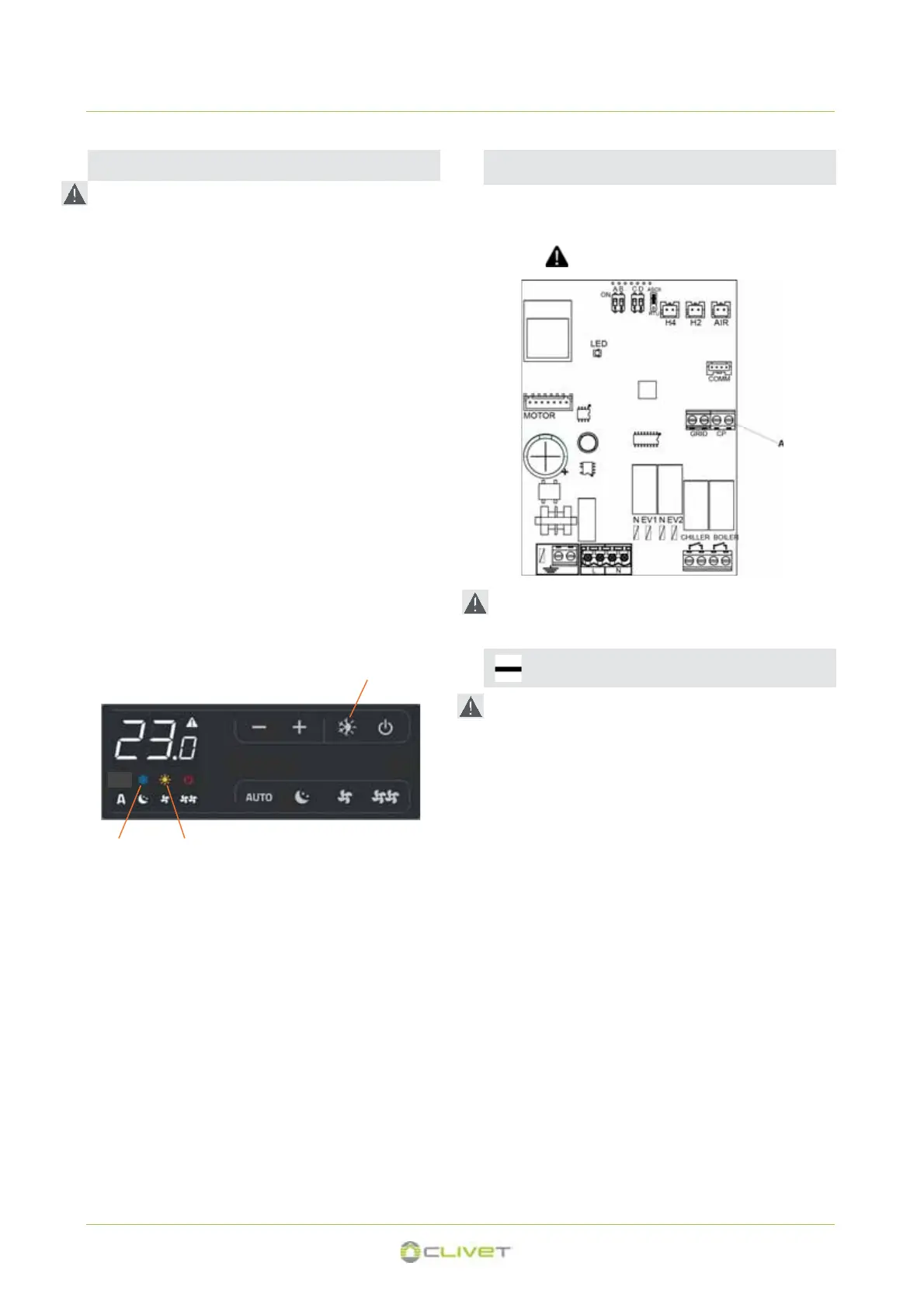 Check the functioning of the heating symbol (ref. B) (alight