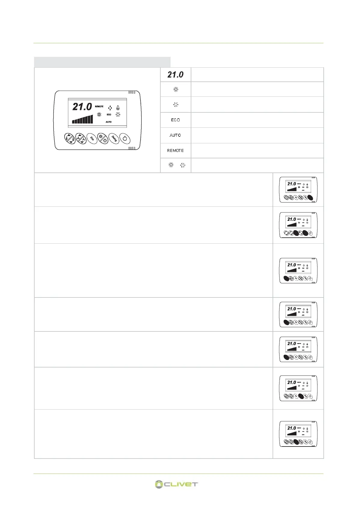 Pressing on the arrows, the set-point increases or decreases (heating, ECO heating, cooling, ECO cooling).