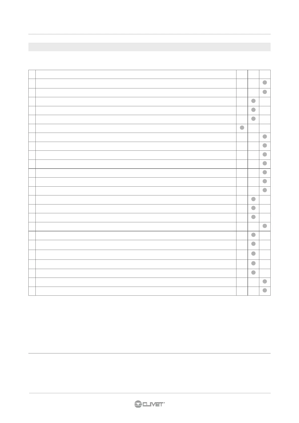 CLIVET EVH Space 31 - Recommended Periodical Checks Sheet