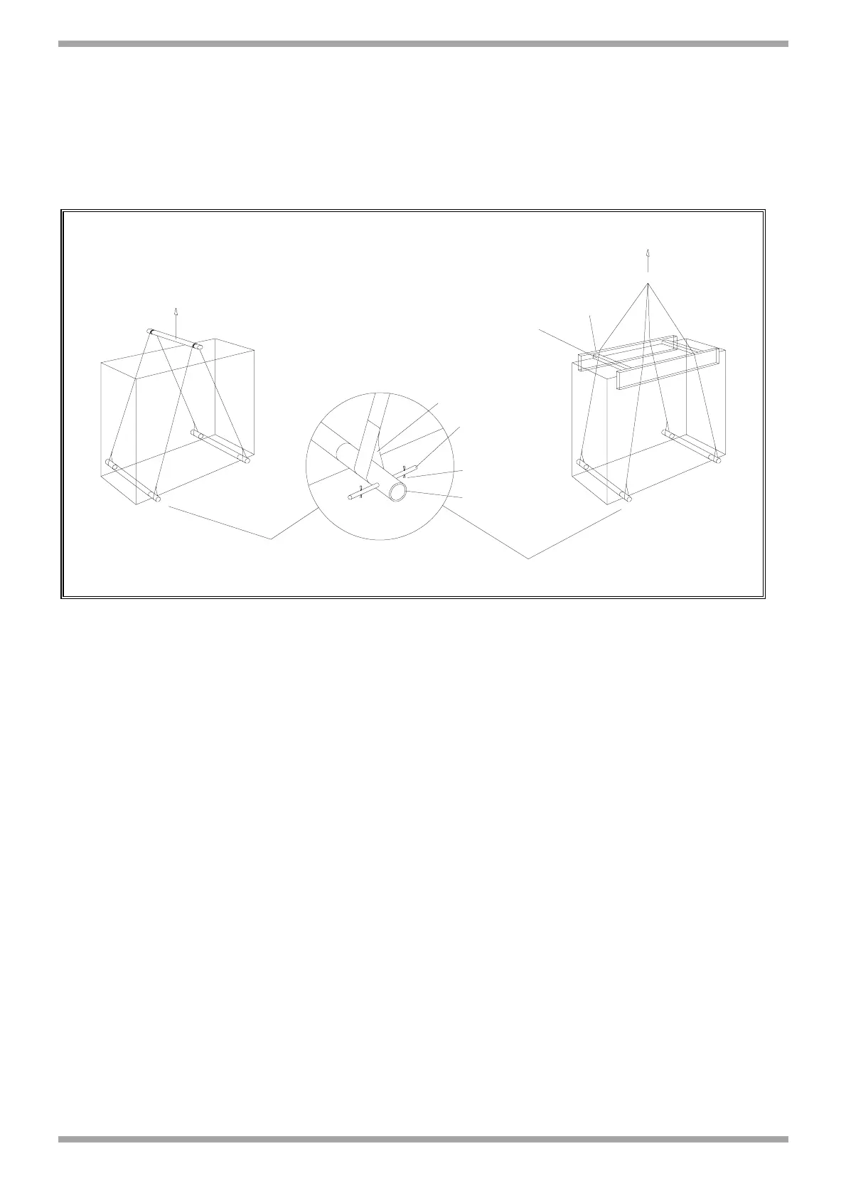- Zum Schutz des Gerätegehäuses die oberen Kanten mit einem Holzverschlag abdecken (bei nur 1 Hubpunkt).
