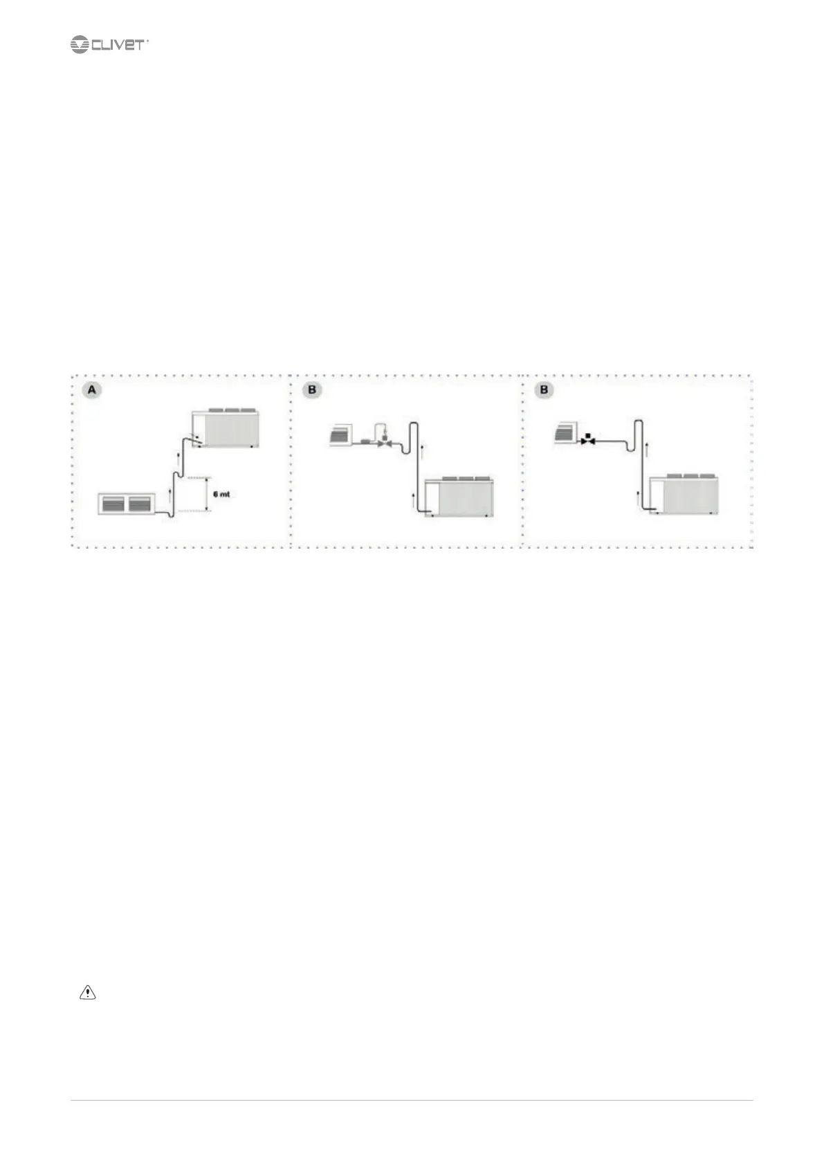 If the condensing unit is lower than the evaporating unit, install a drain trap of equal height to the exchanger coil, so as to prevent the return
