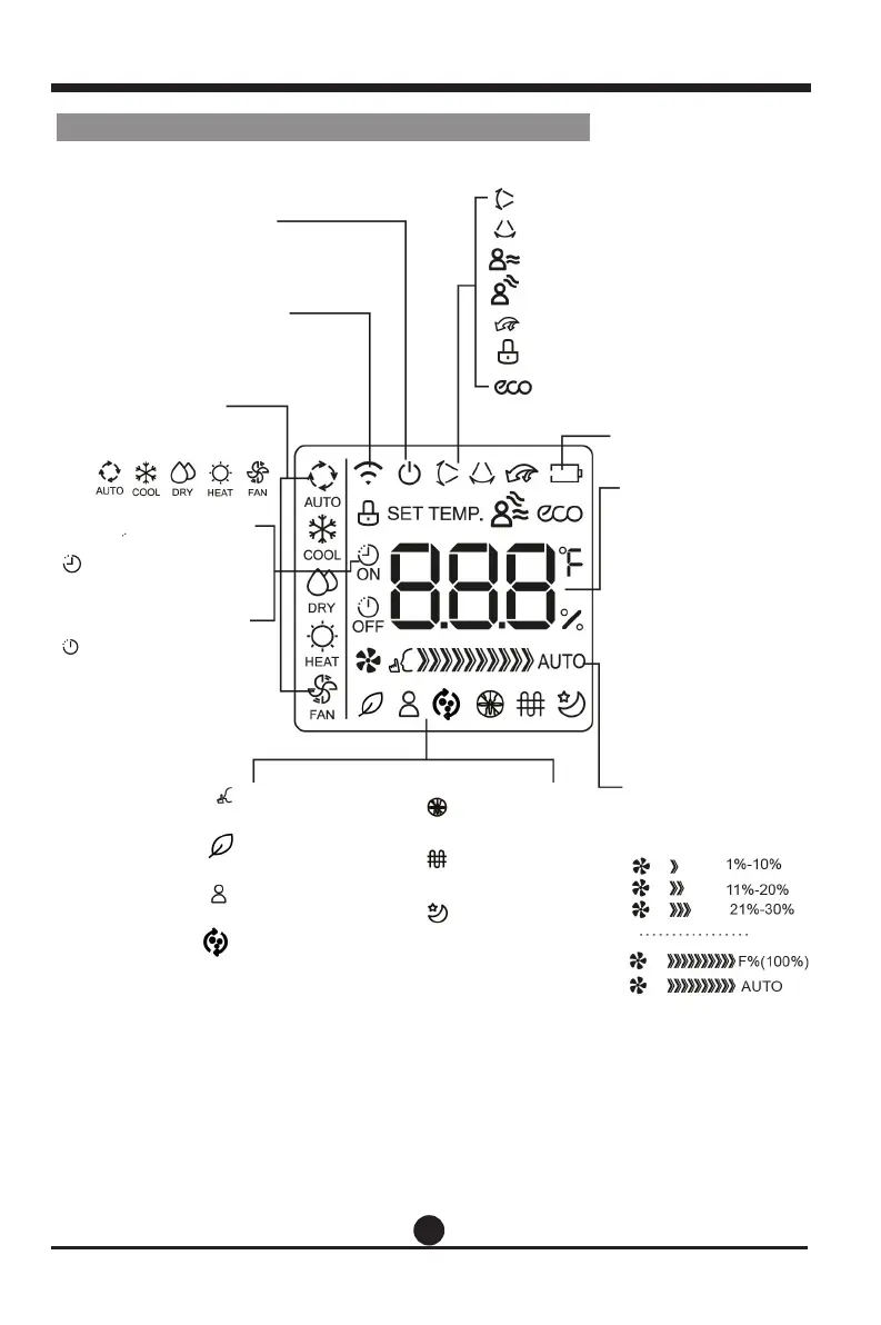 fonctionnement, la fenêtre de l’écran d'affichage n'affichera que les symboles des fonctions en cours