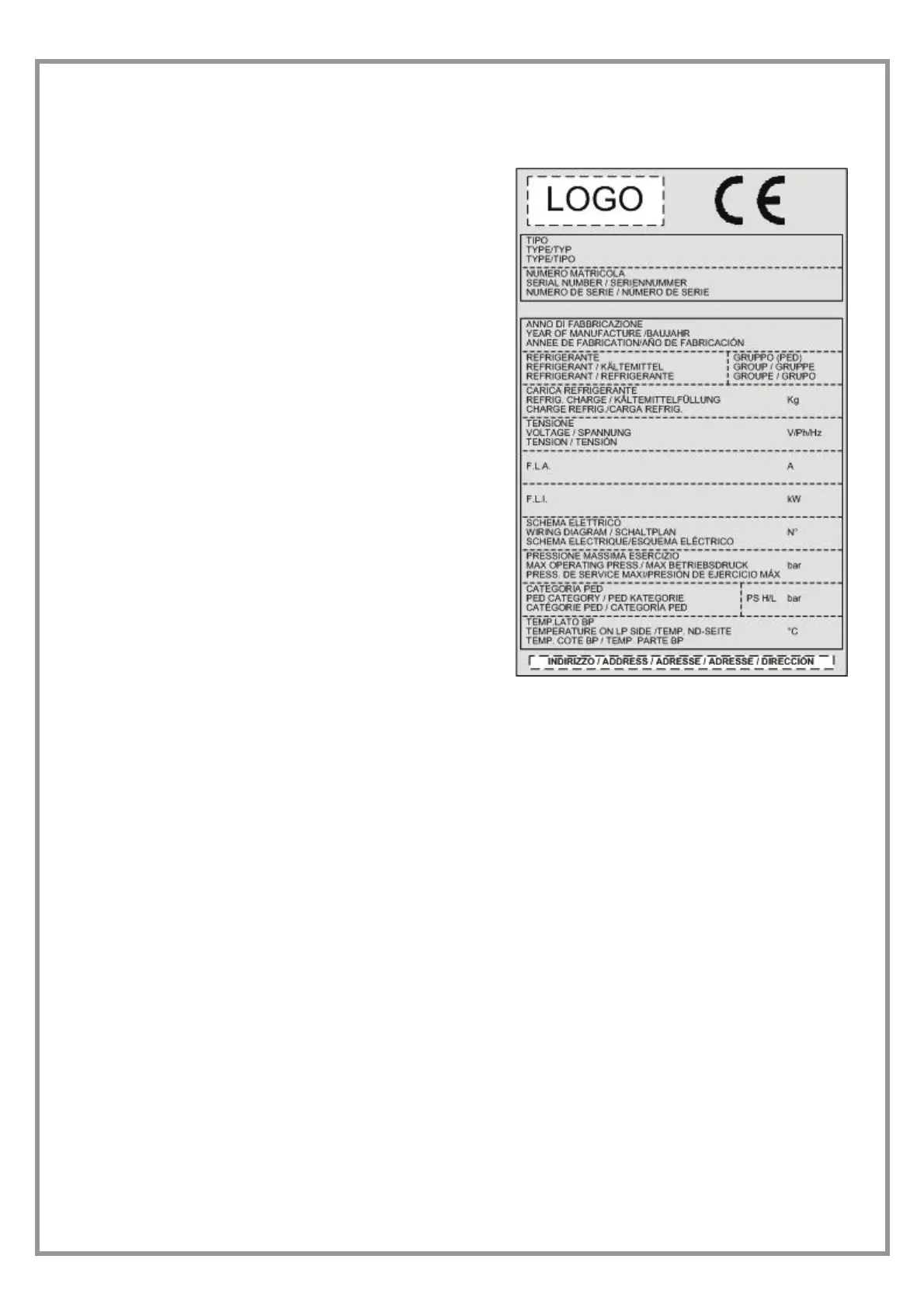 logo and address of the manufacturer.