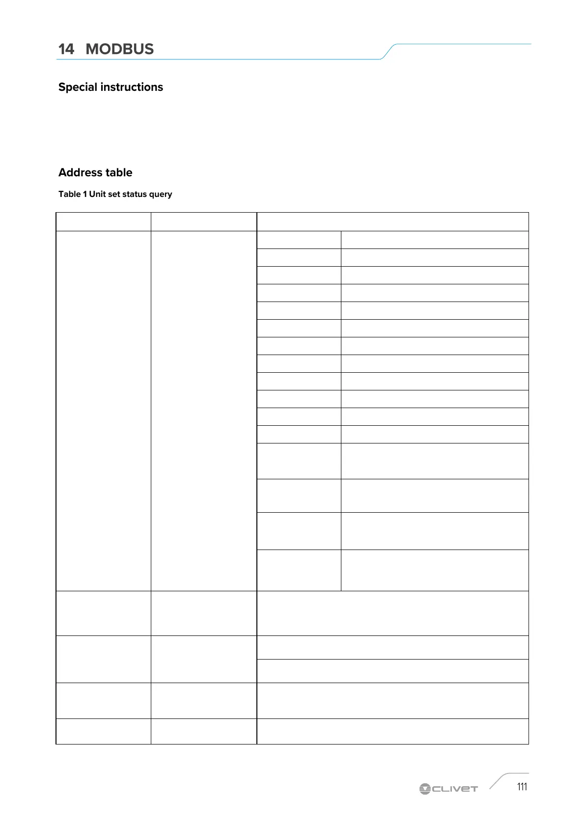 CLIVET WSAN-YMi 141 - Modbus Register Tables