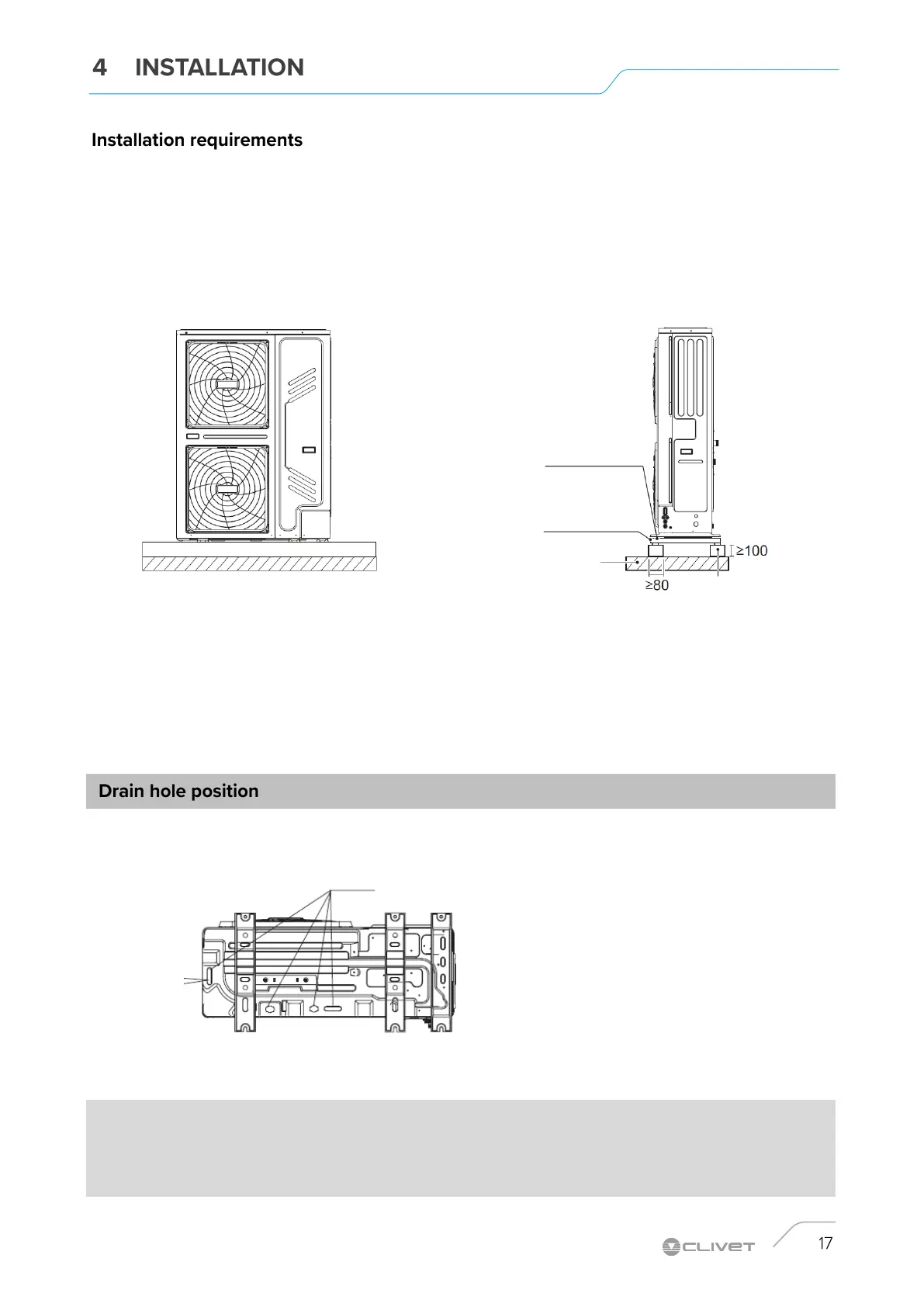 Check the strength and level of the installation ground so that the unit may not cause any vibrations or noise during its operation.