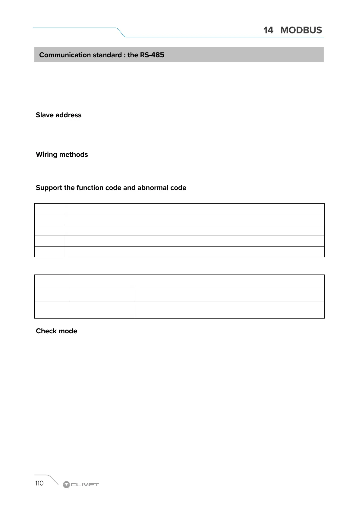 01 Illegal function code Unsupported function codes