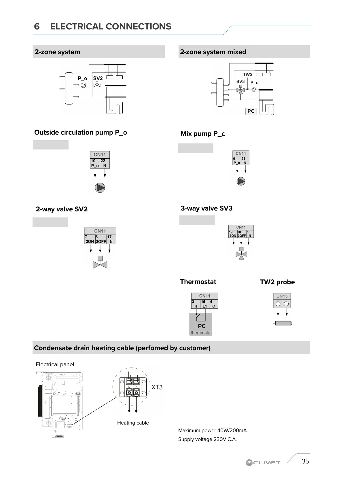 CLIVET WSAN-YMi 91 - 2-Zone System Wiring; Pump and Thermostat Wiring
