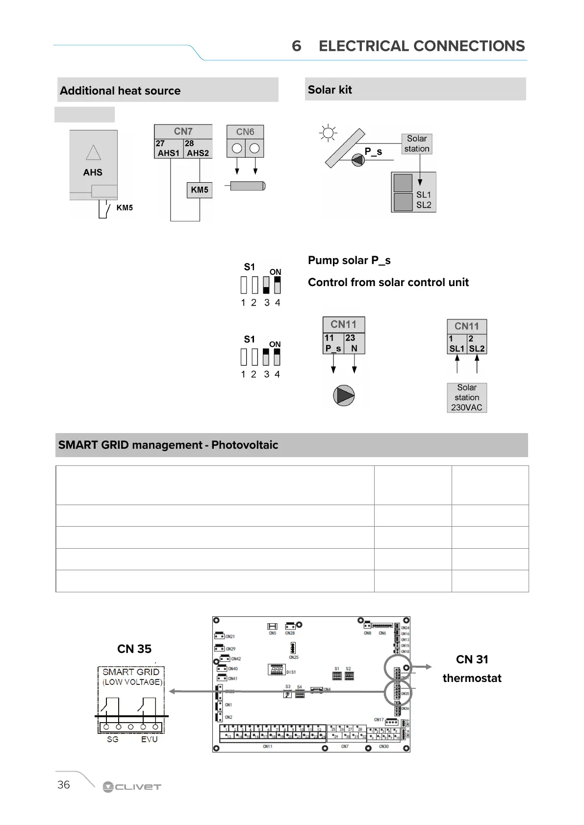 CLIVET WSAN-YMi 91 - Additional Heat Source and Solar Kit Wiring; SMART GRID Management