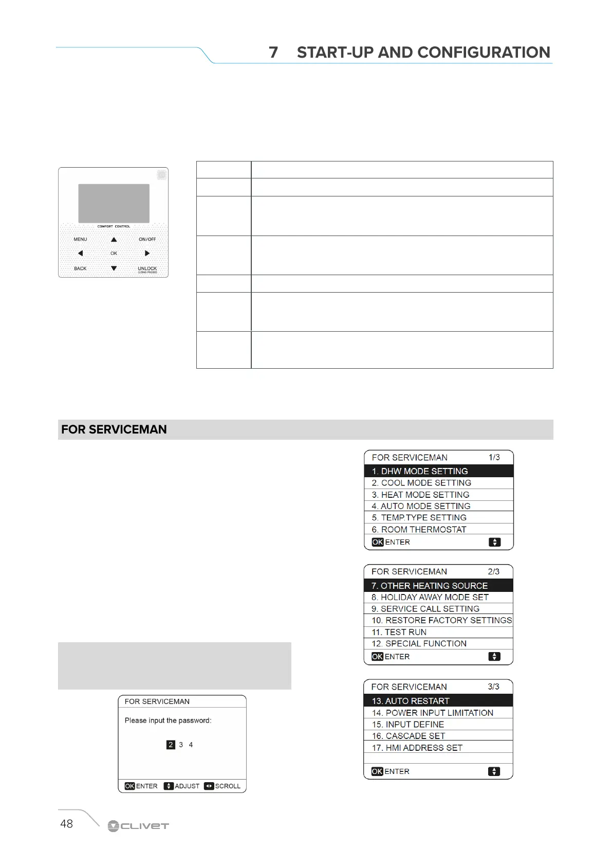 FOR SERVICEMAN is designed for the installer to set the