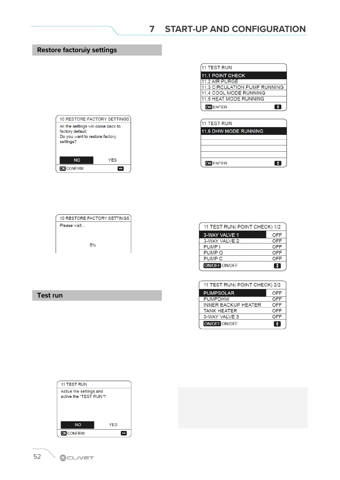 To enter test run, go to MENU > FOR SERVICEMAN > TEST