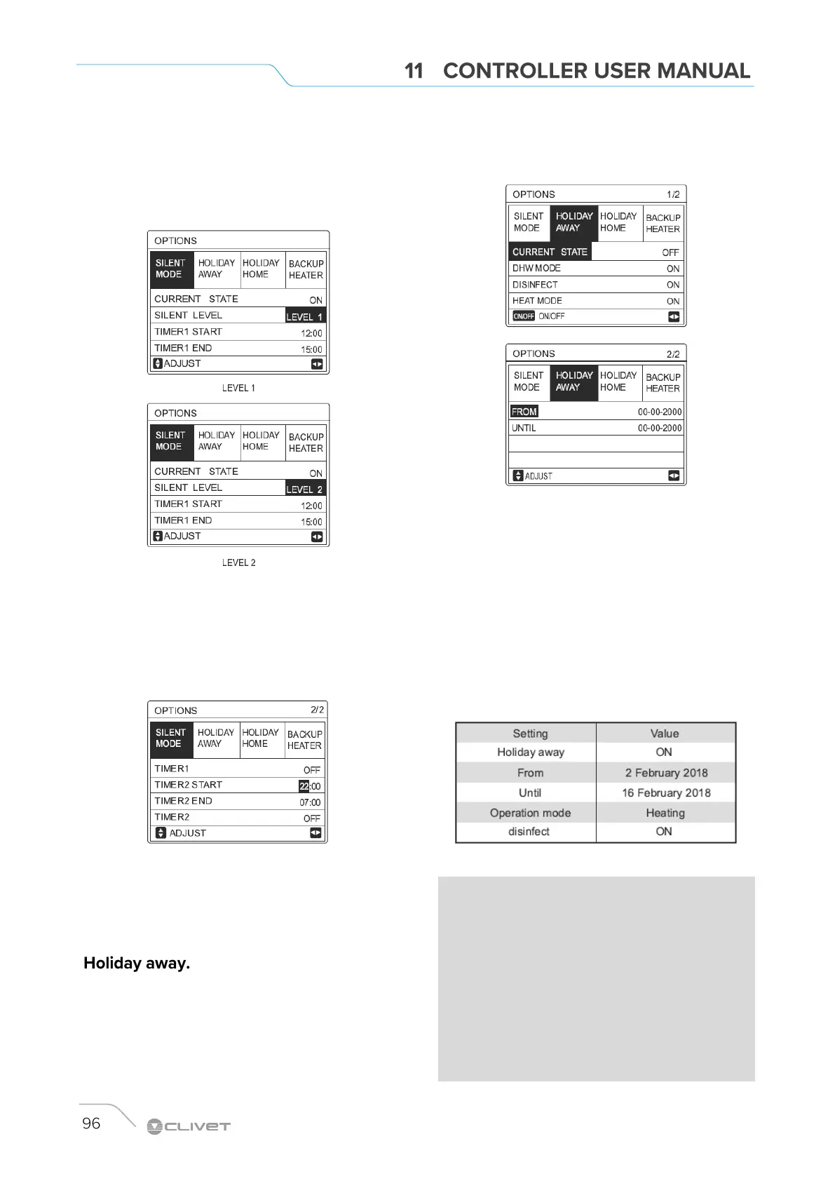 Go to MENU > OPTIONS > HOLIDAY AWAY.