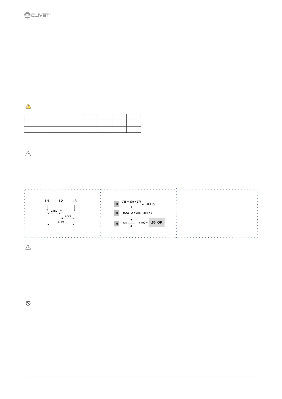 Check the voltage and line frequency values which must be within the limits: 400/3/50 +/- 10%